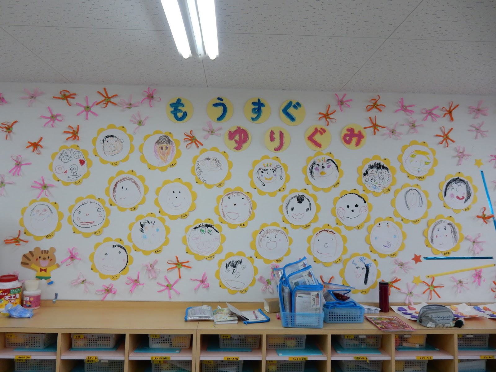 たんぽぽさんのお部屋には、「もうすぐゆりさん」と、自分のお顔が貼ってありました。