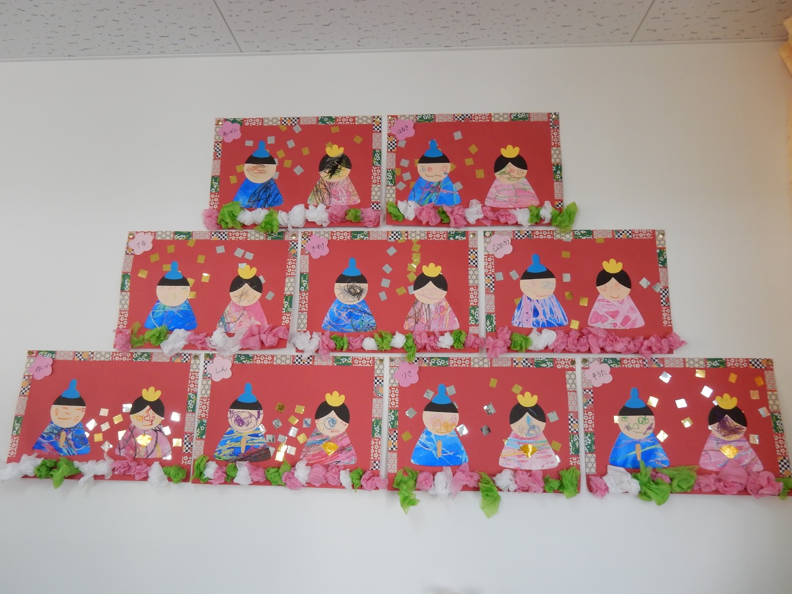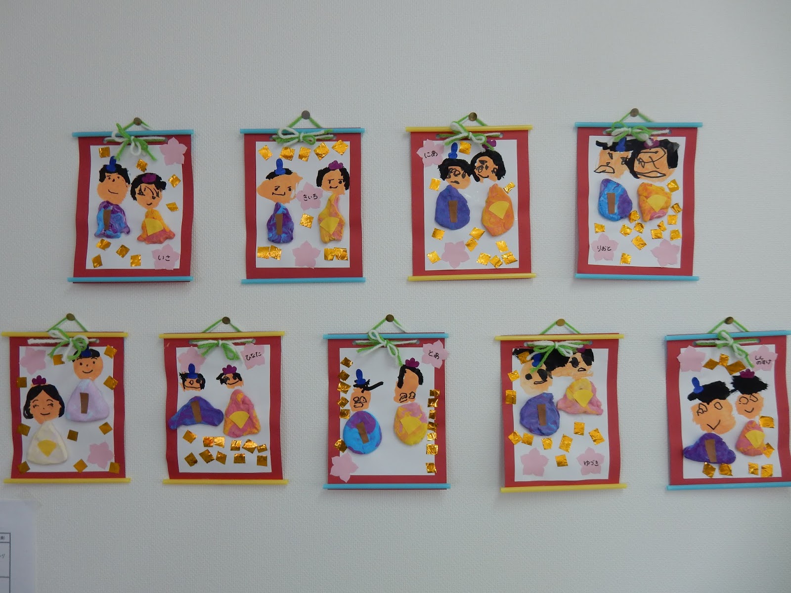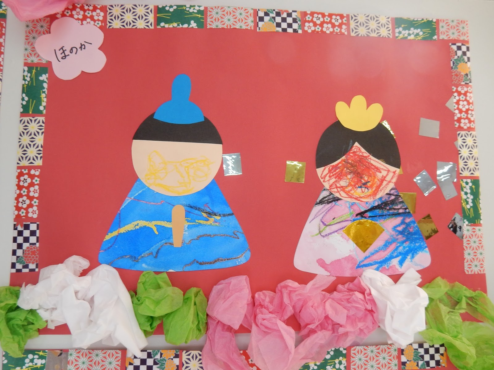 もうすぐ”ひなまつり”ですね。それに向け、ひな人形の製作をしました。各クラスのお部屋に、とてもすてきなひな人形ができあがりました!!!