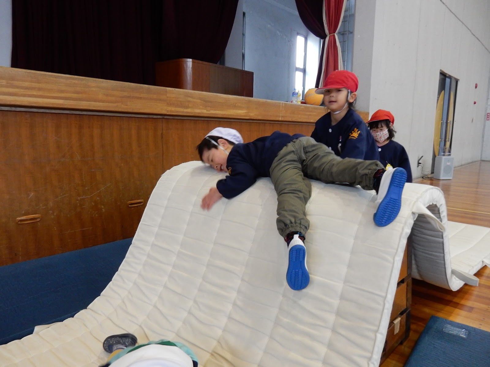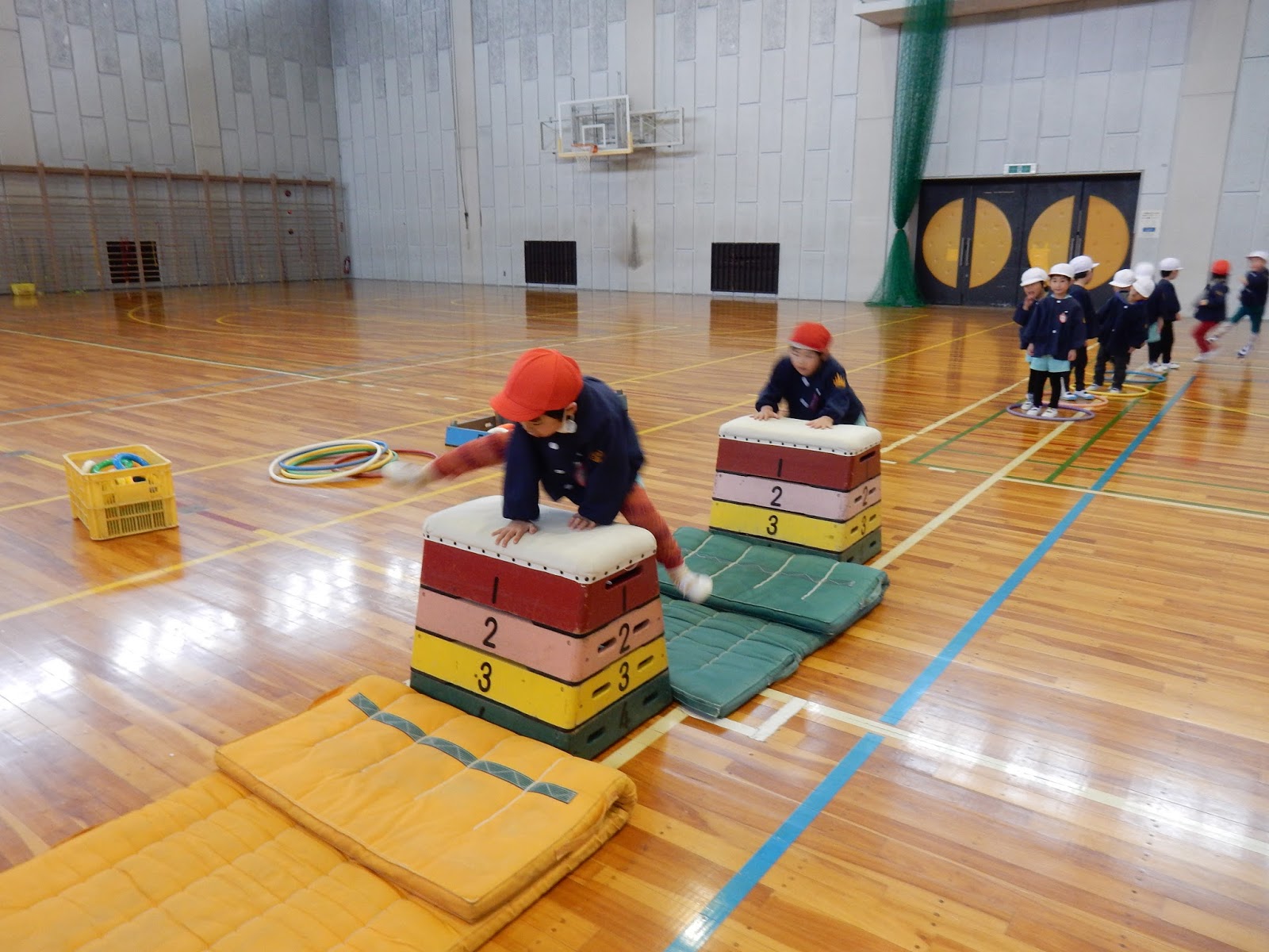 跳び箱も、ほら!1人で登れるよ!後ろのお友達は、順番、順番だよ!