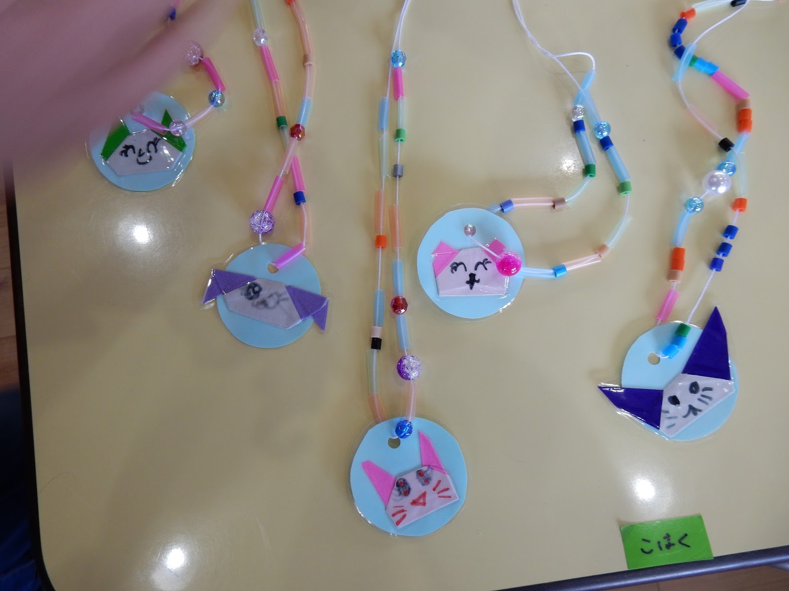 ひまわりさんから、みんながもらったものは、ねこといぬのペンダント!!!