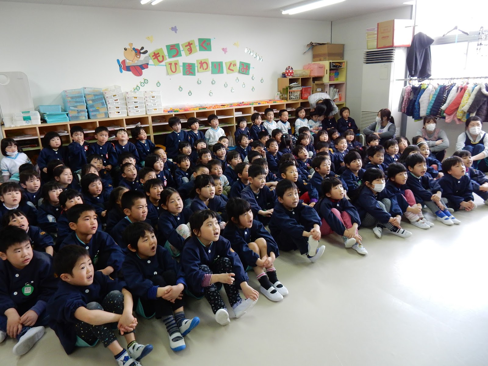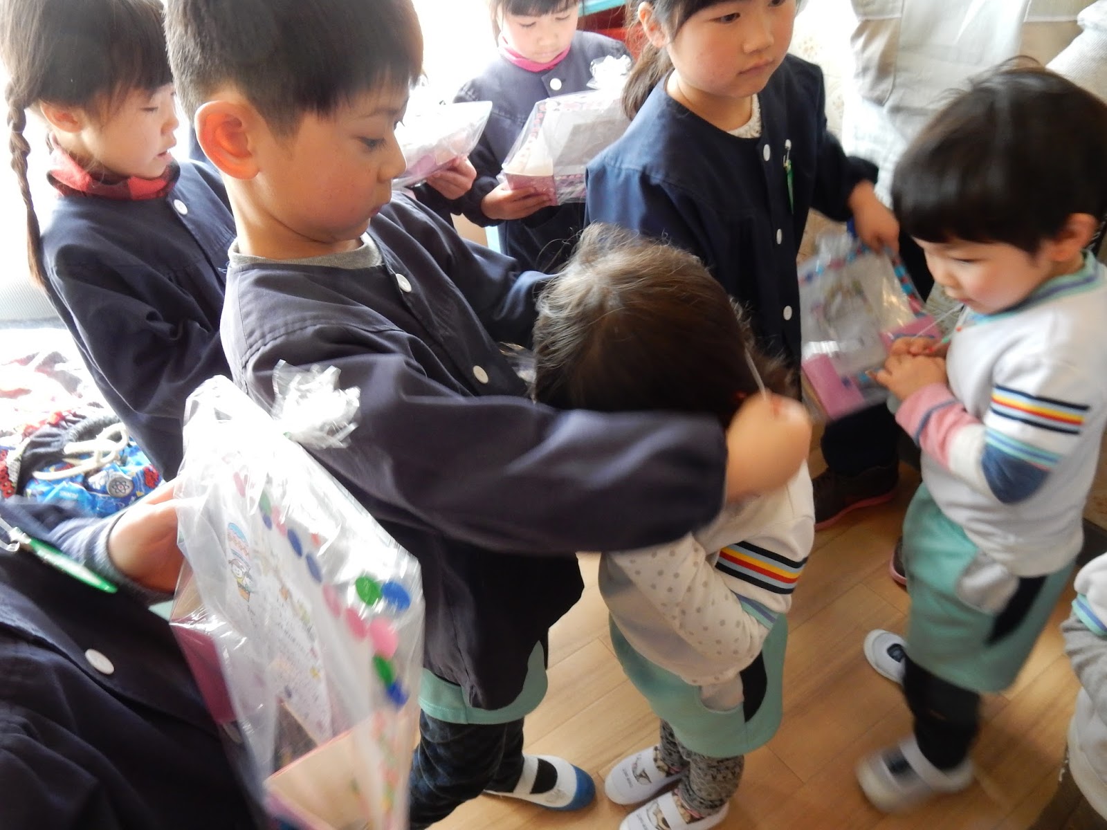 ひまわりさんが園で1日過ごすのが、今日で最後の日となりました!今日のお別れ会は、楽しいお話を聞いたり、プレゼント交換したり、一緒にご飯を食べました!