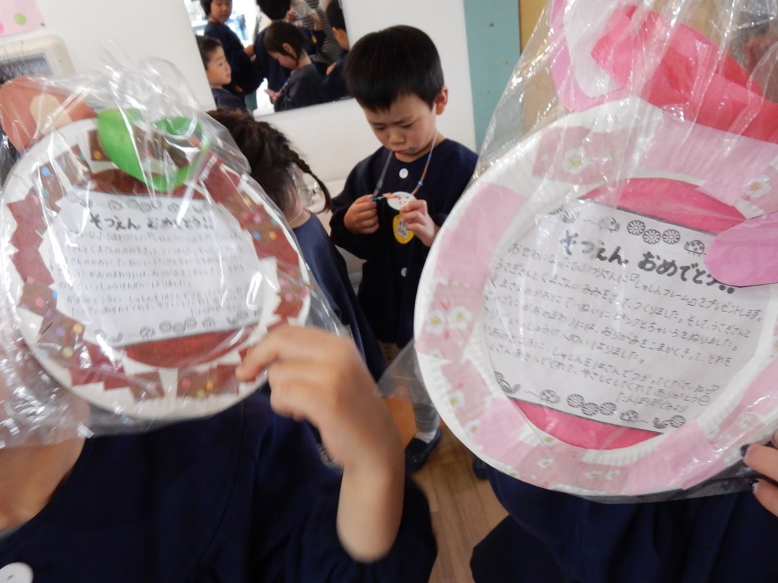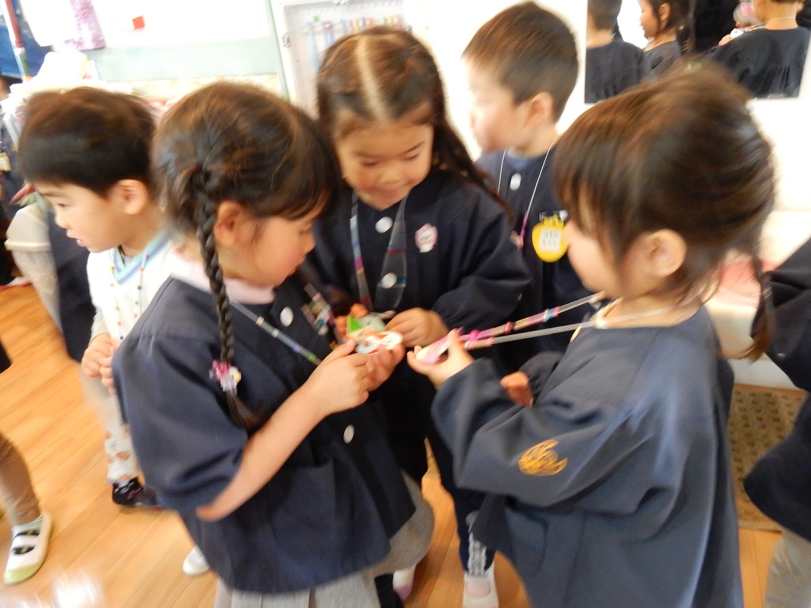 ひまわりさんから、ペンダントをもらってうれしそ~う!”みて~かわいい~”と見せ合いっこ!!