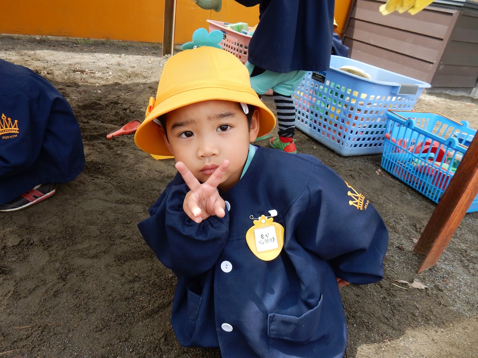 お外で遊ぶの、楽しいね!”ピース!!!”