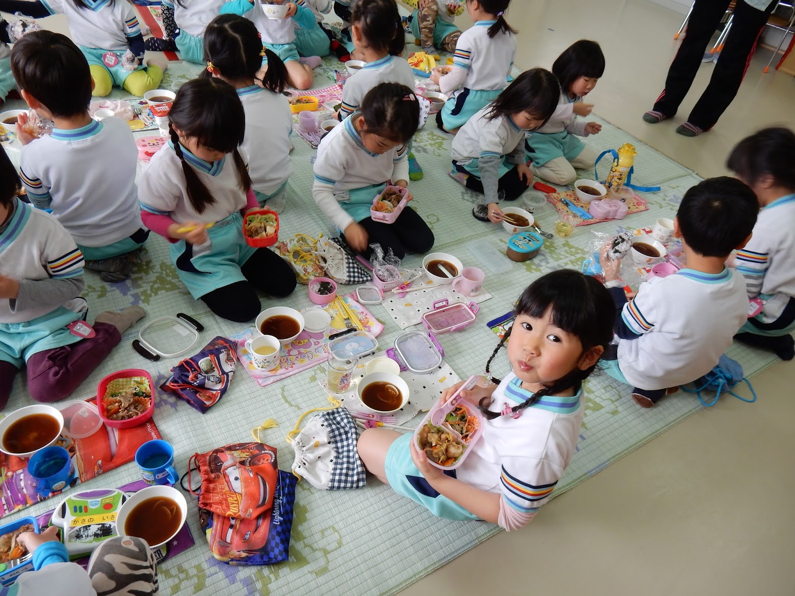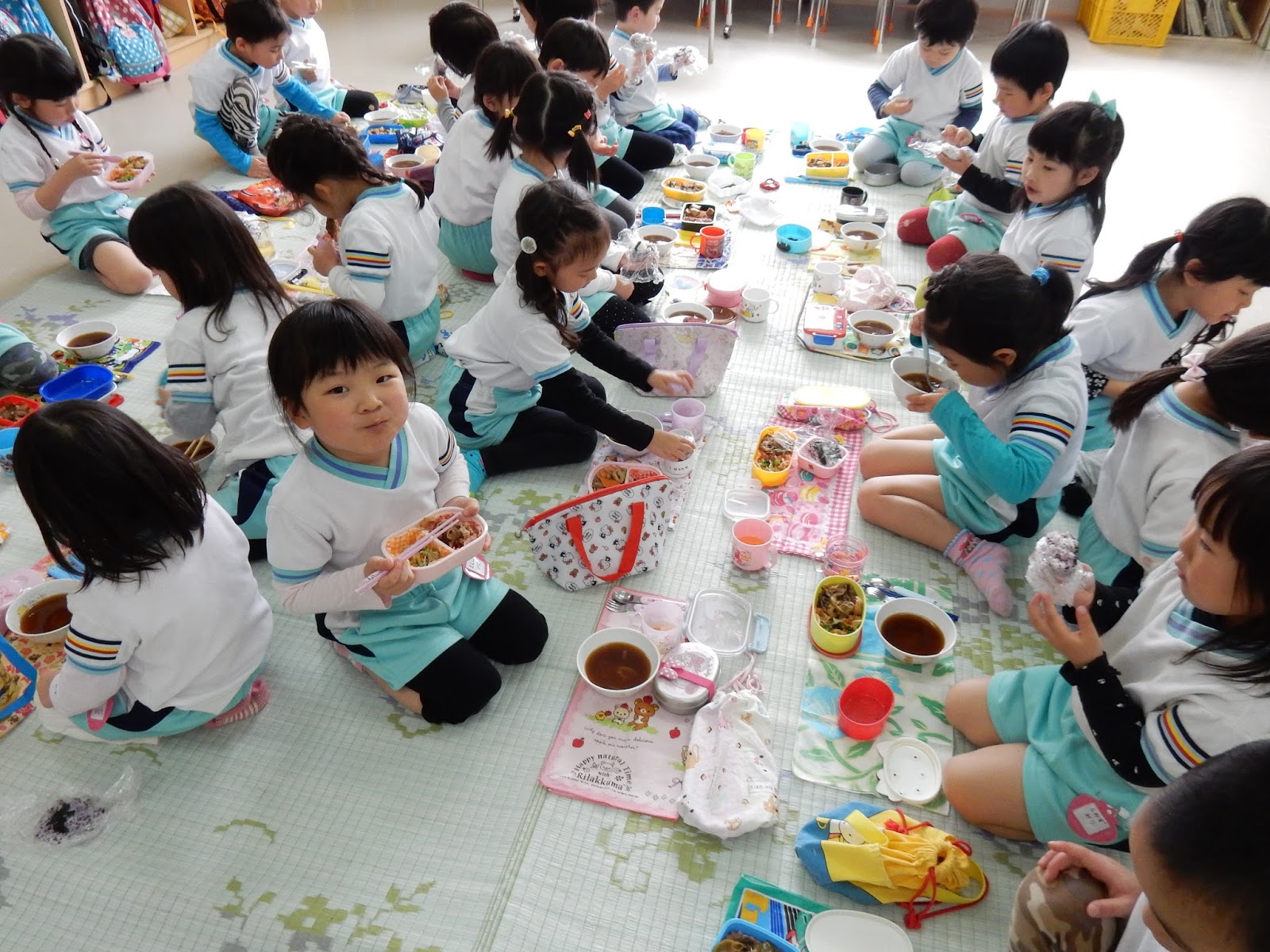 さあ!できあがった”てんとう虫おにぎり”を、お弁当箱につめて、いつもと違う雰囲気で「いただきま~ス!!」