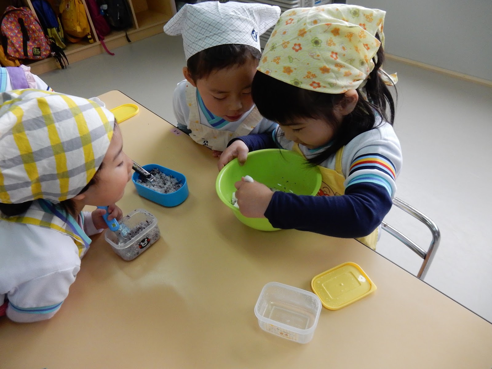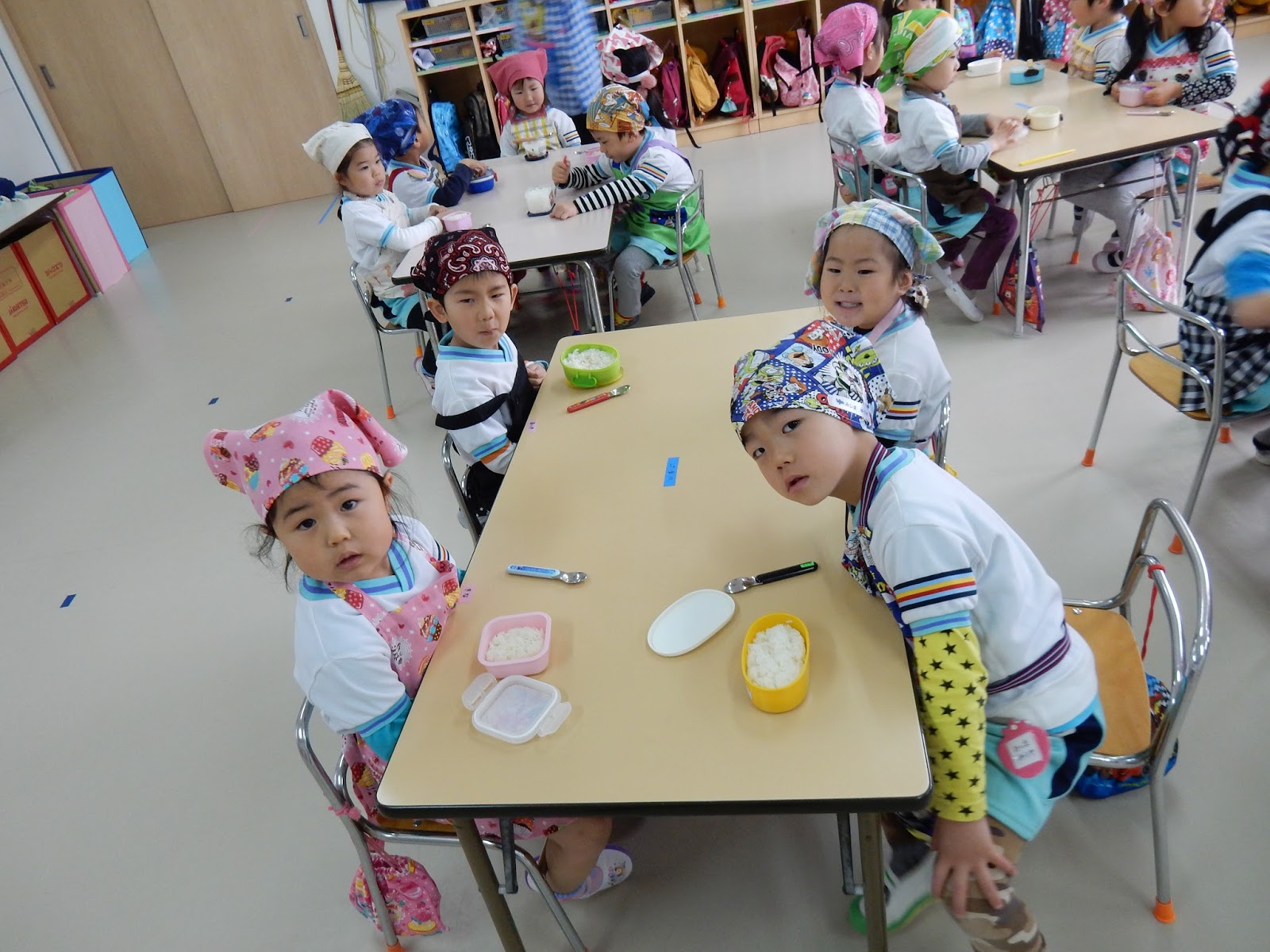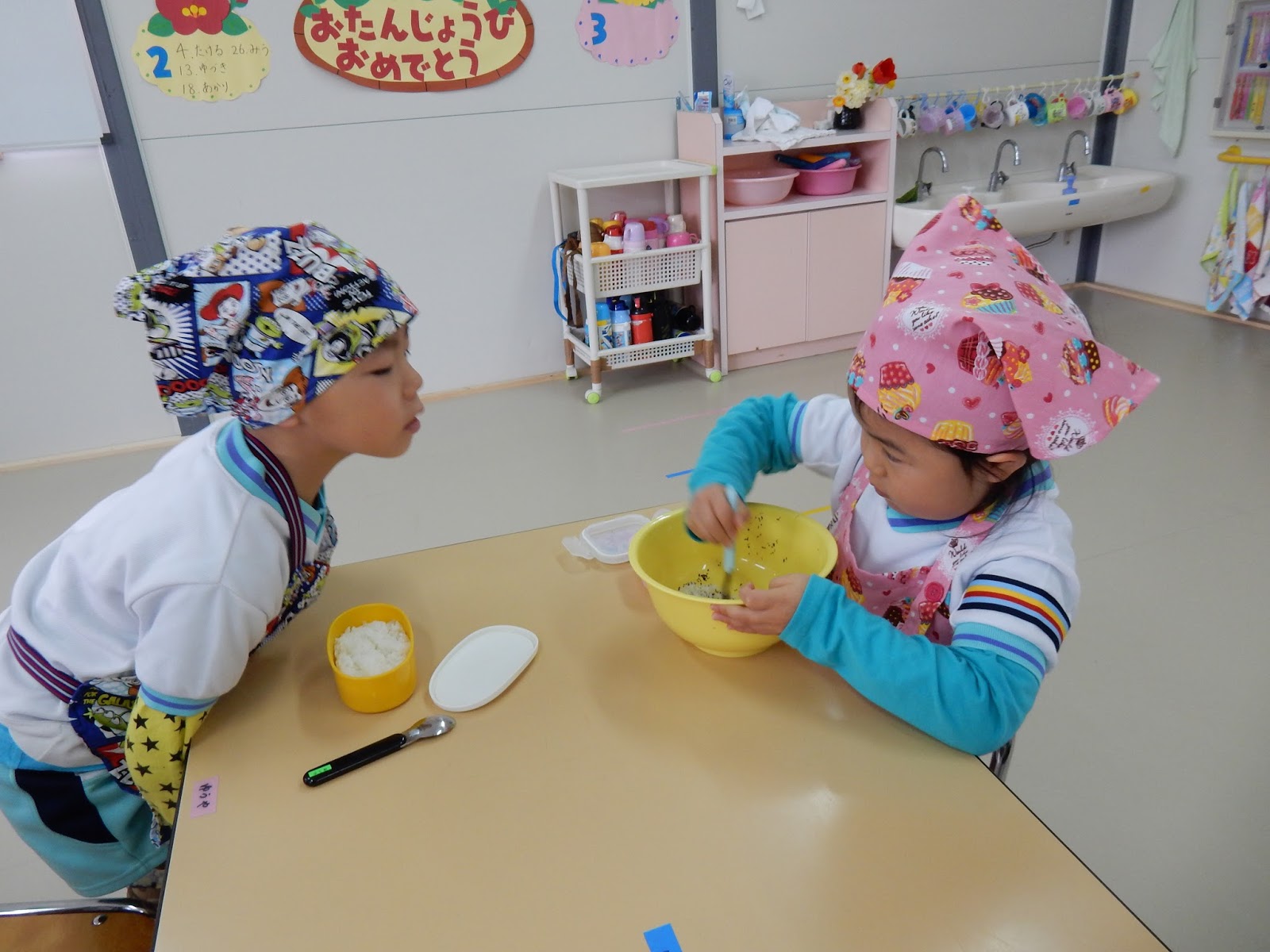 さあ!今日は、ゆり組さんがクッキング!!! 何をつくるのでしょうか~?白いご飯が見えますね・・