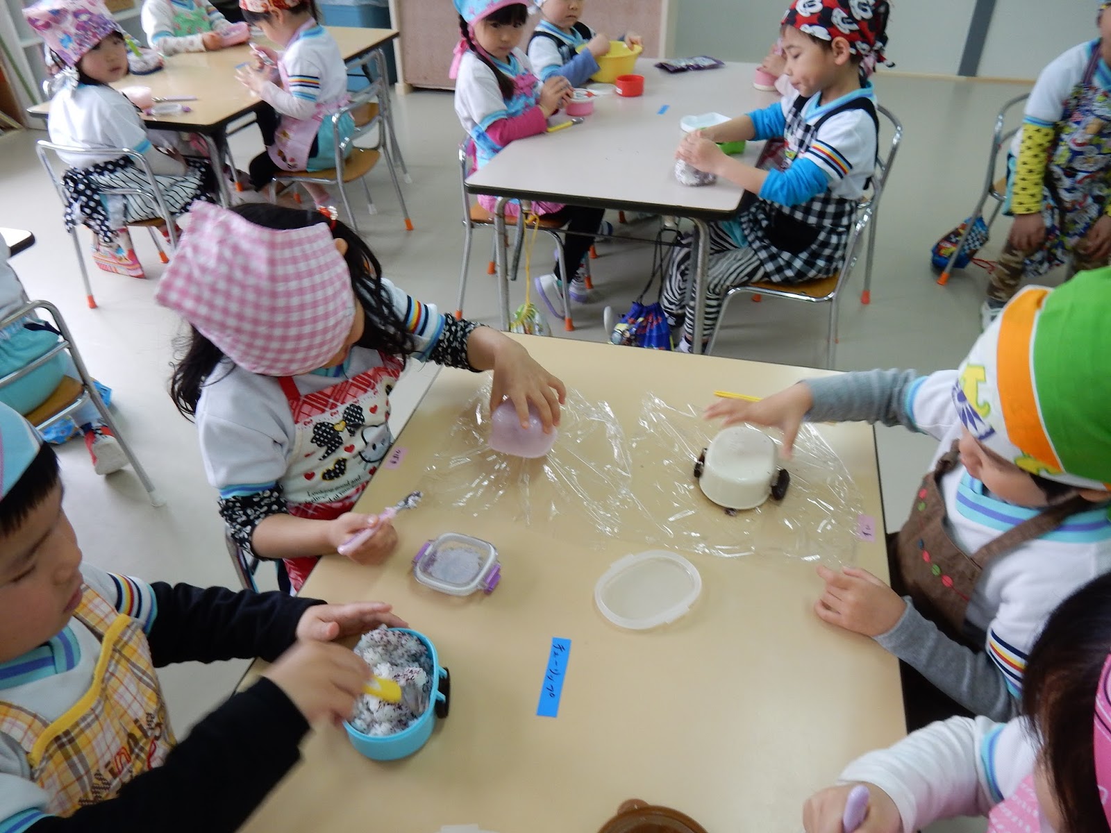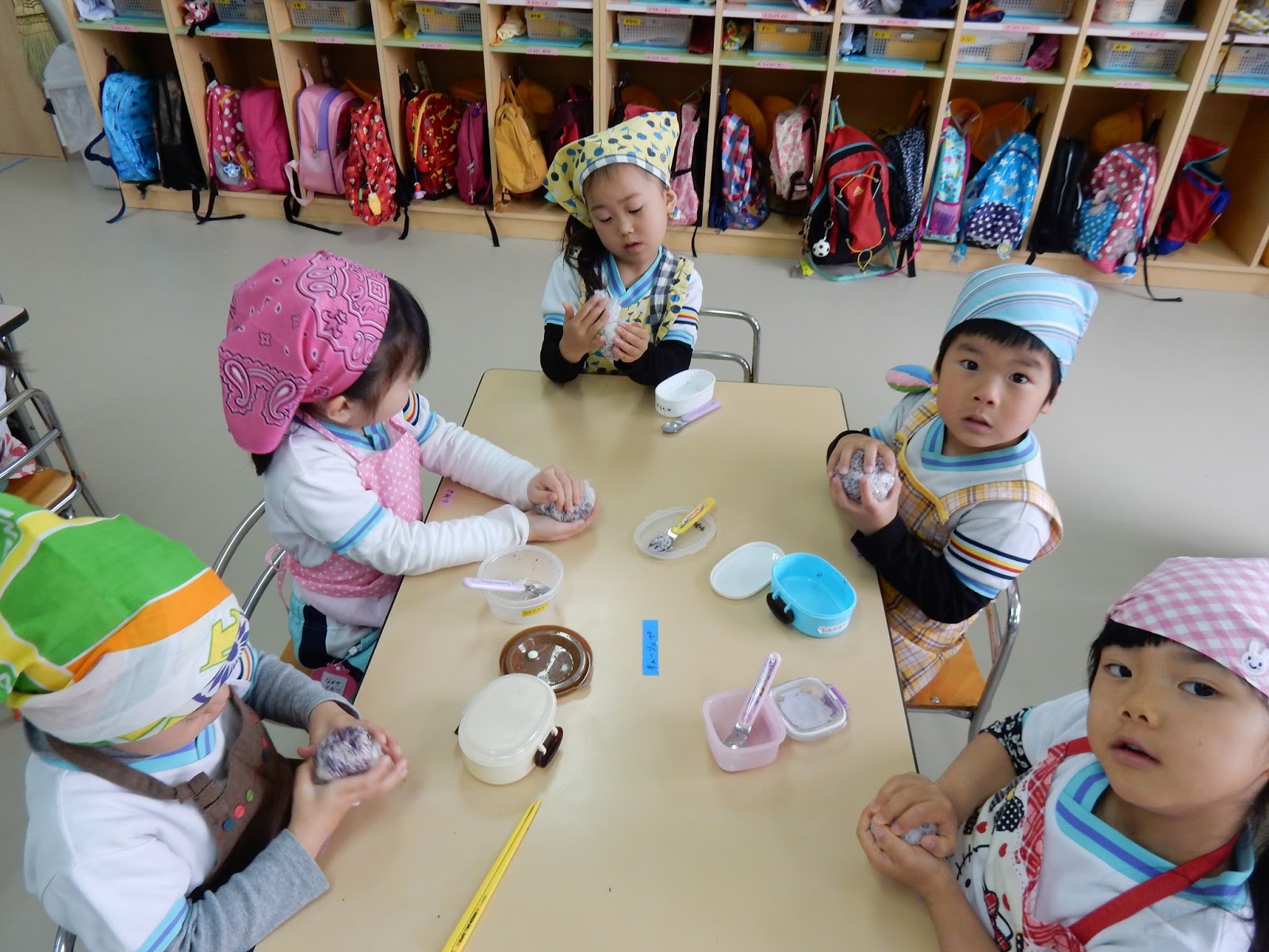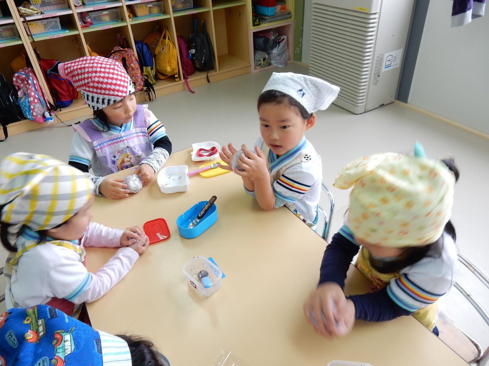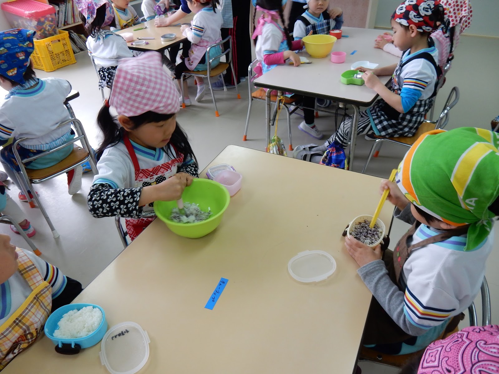 さあ!今日は、ゆり組さんがクッキング!!! 何をつくるのでしょうか~?白いご飯が見えますね・・