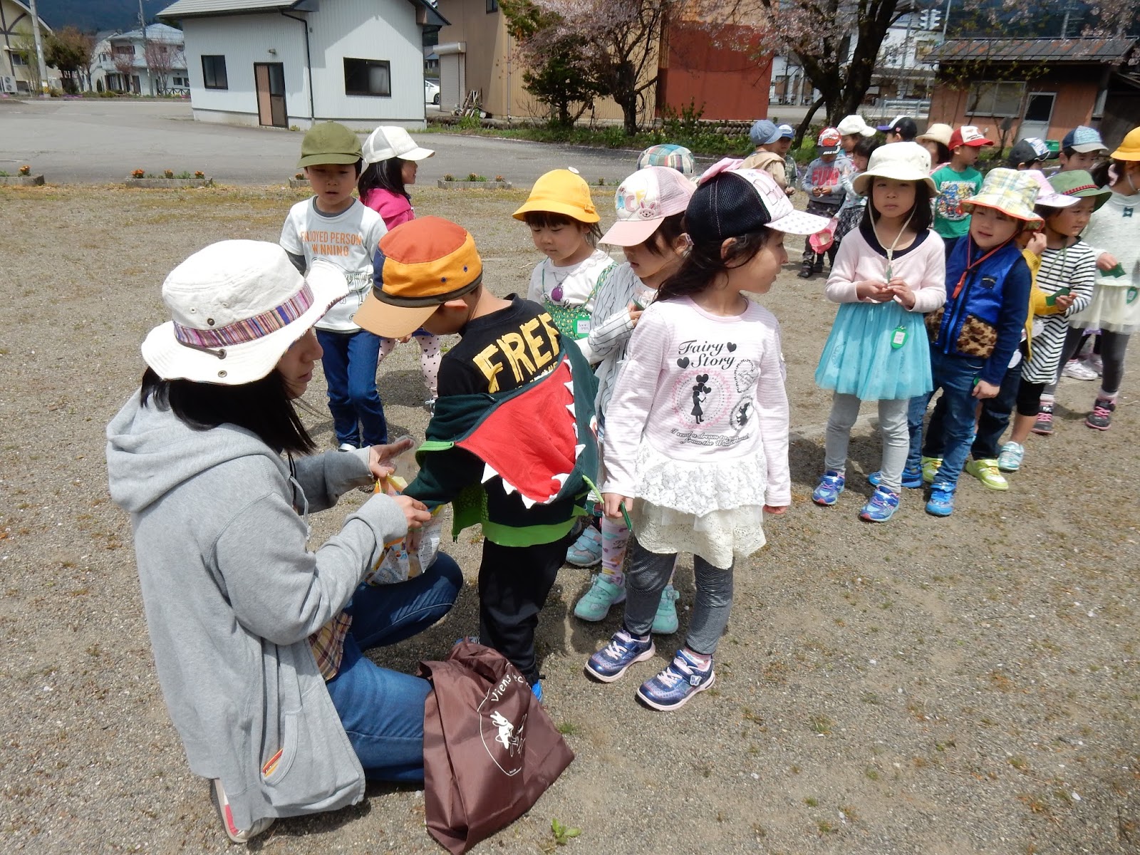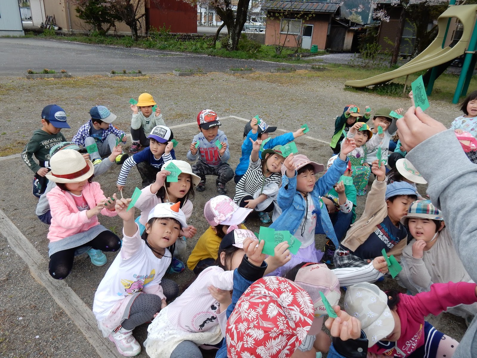 すみれさん、たんぽぽさん、ひよこさんは、園庭に・・・あっ、カードみつけた!!」
