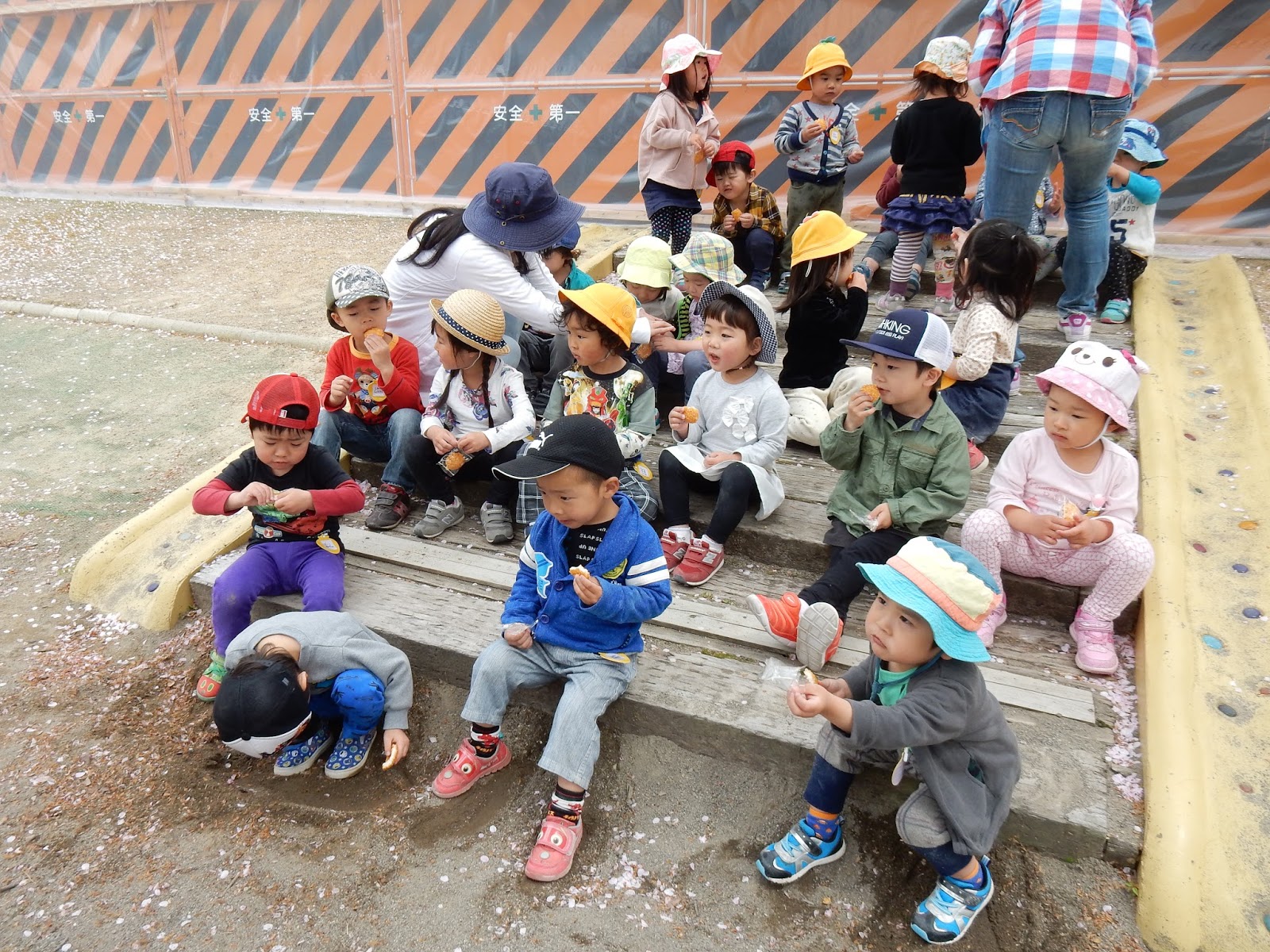 みんなと一緒にお話しを聞いてます。