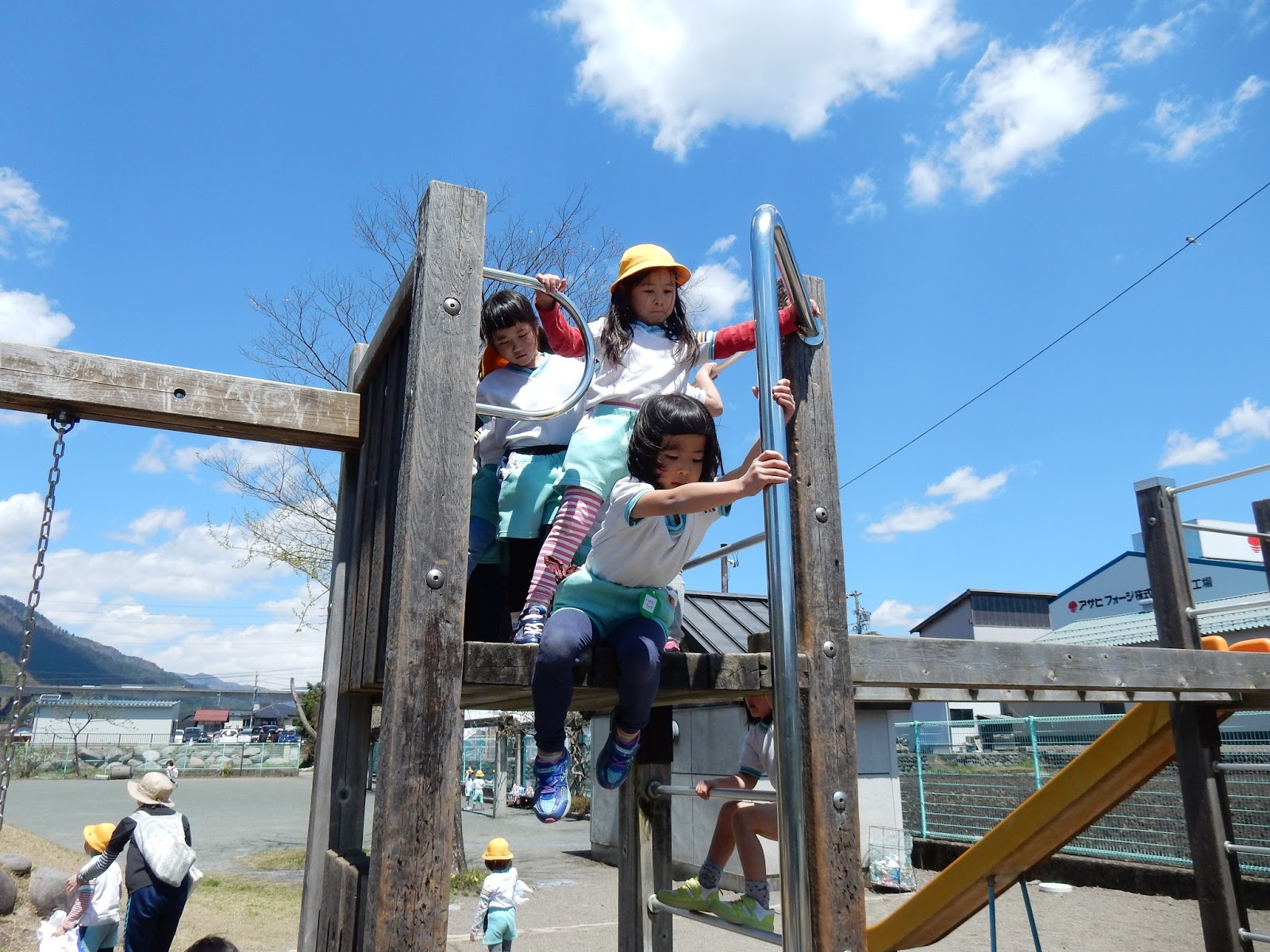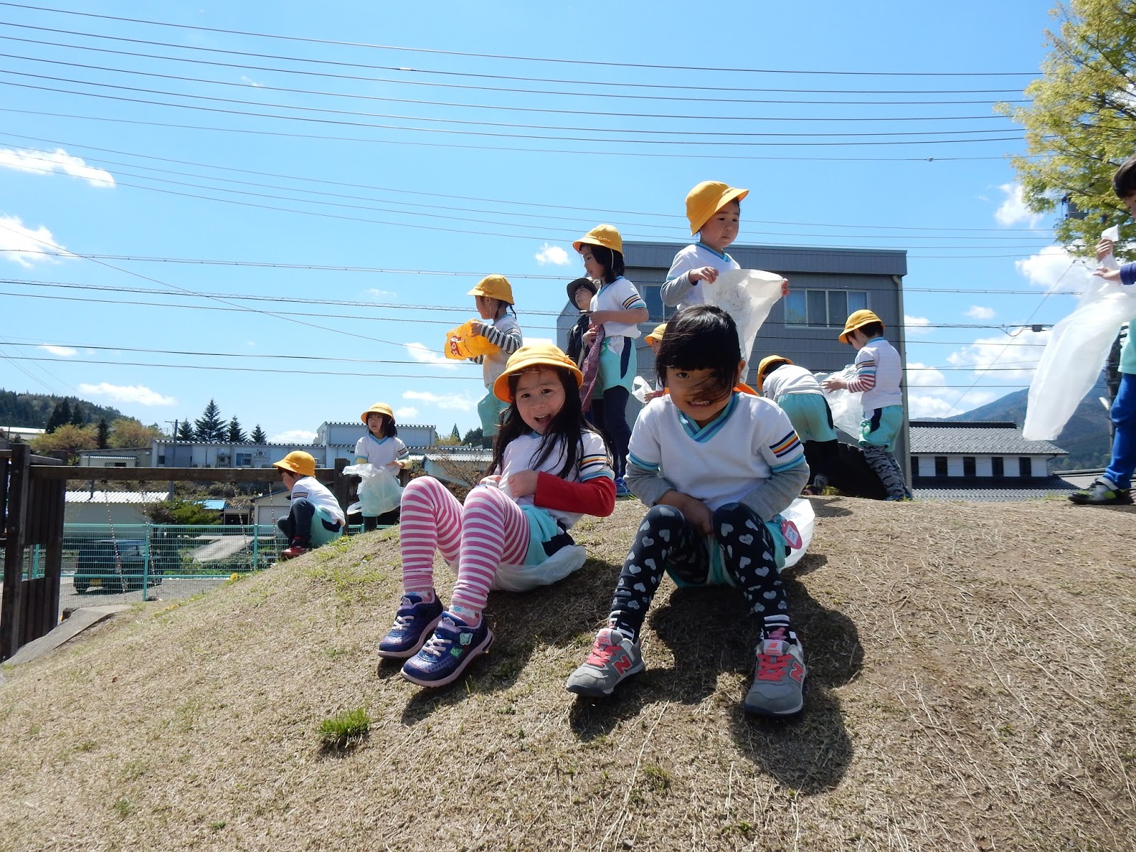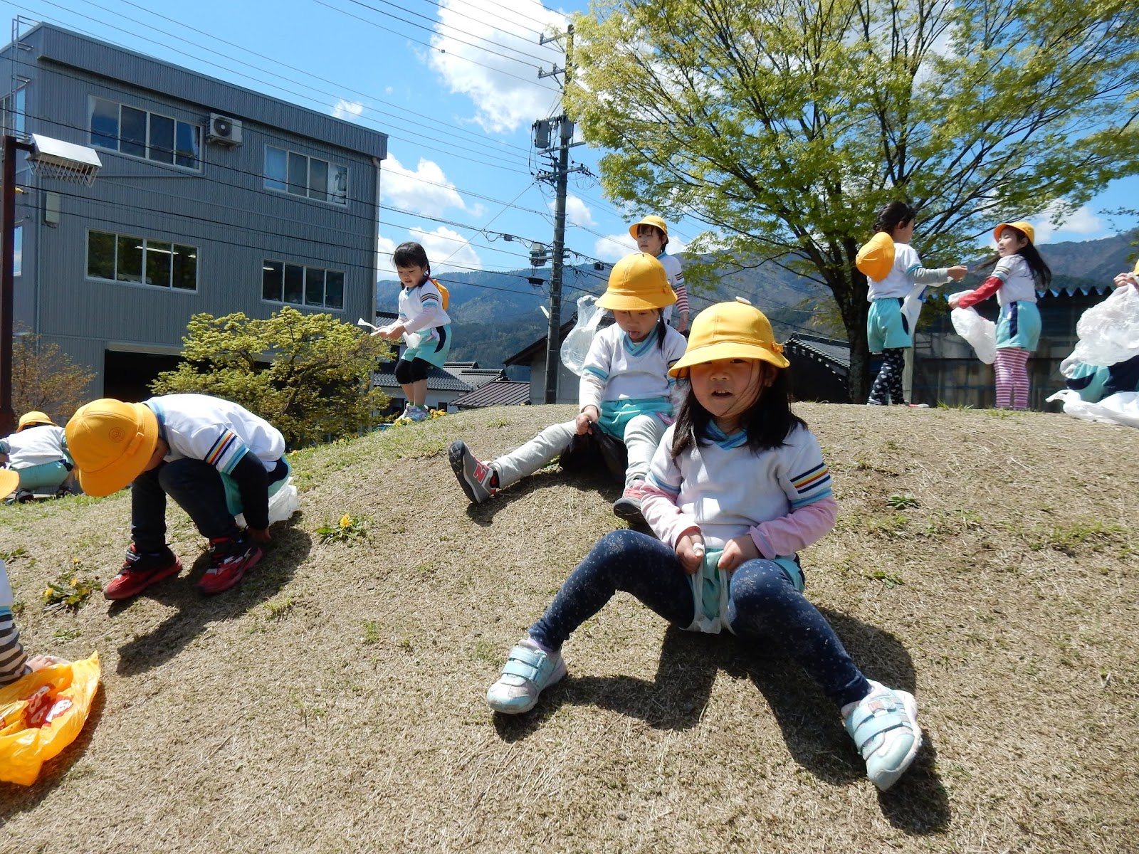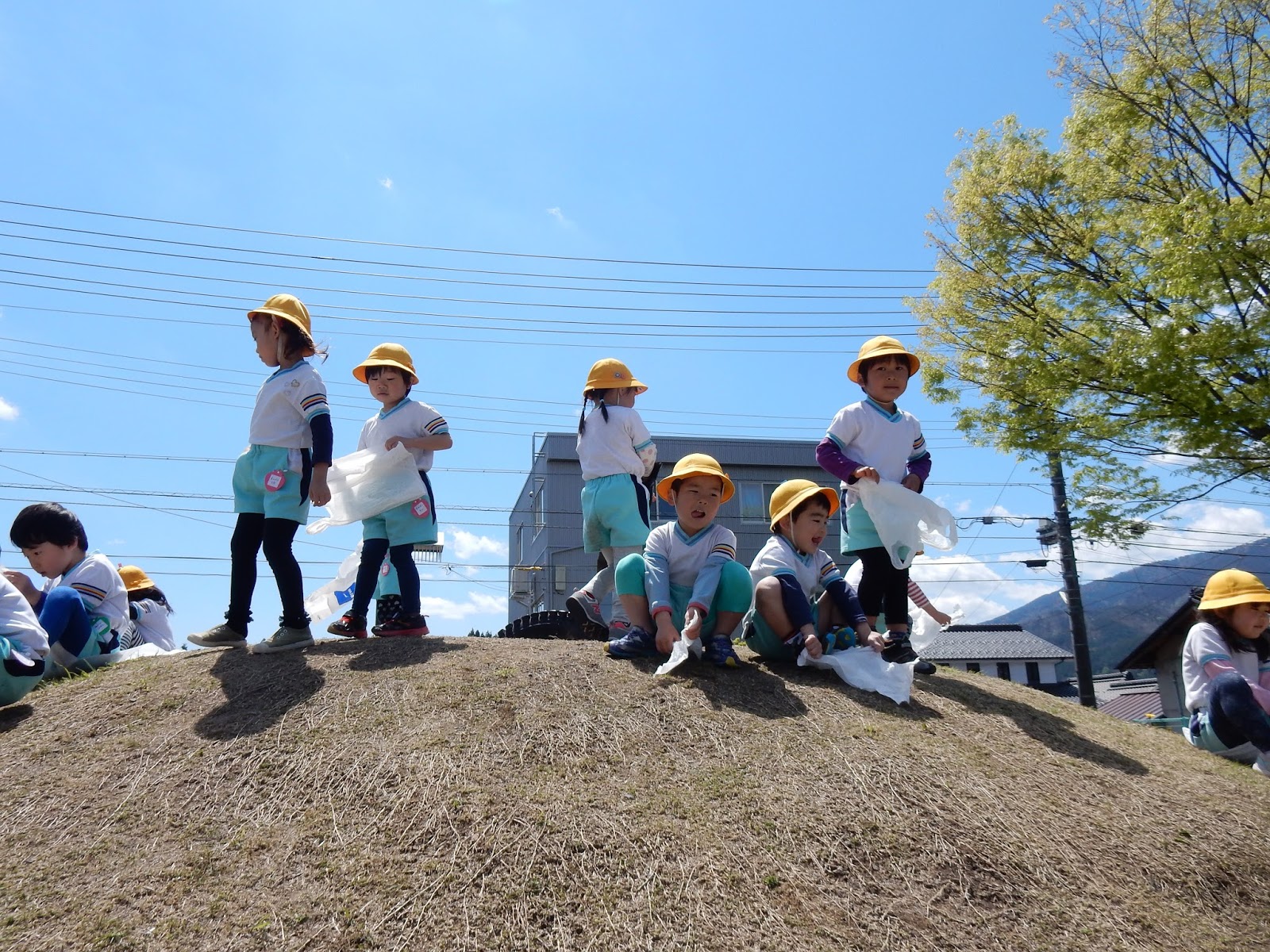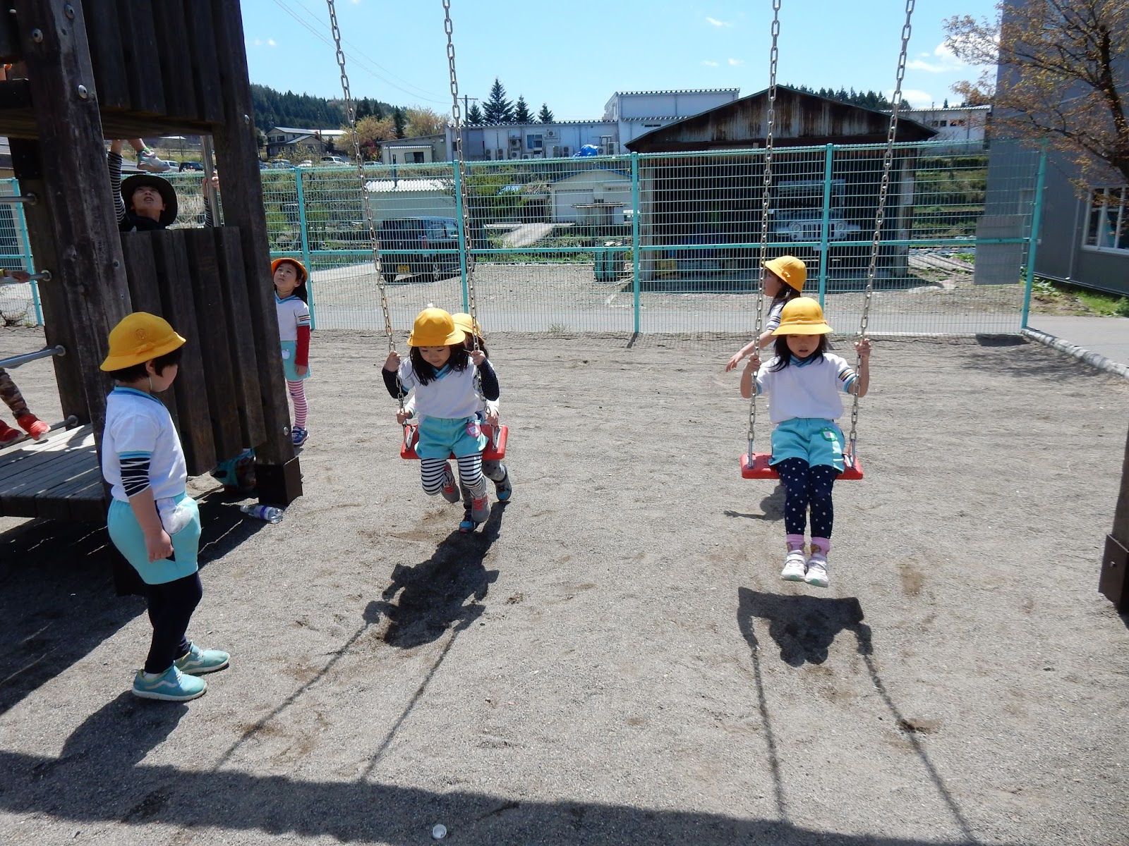 風が吹いてちょうどビニール袋がこいのぼりのように”パタパタ”となびいて、おもしろかったよ!走って遊んで、吹いて行くビニール袋を追いかけたりして・・・