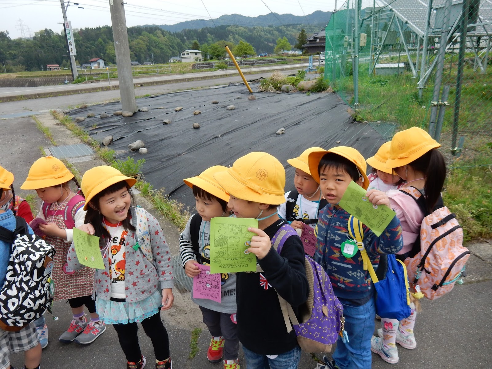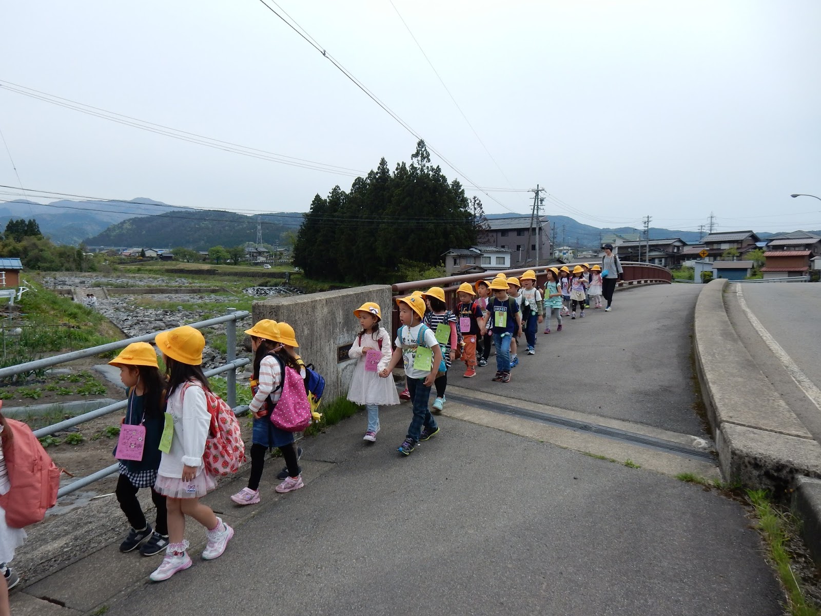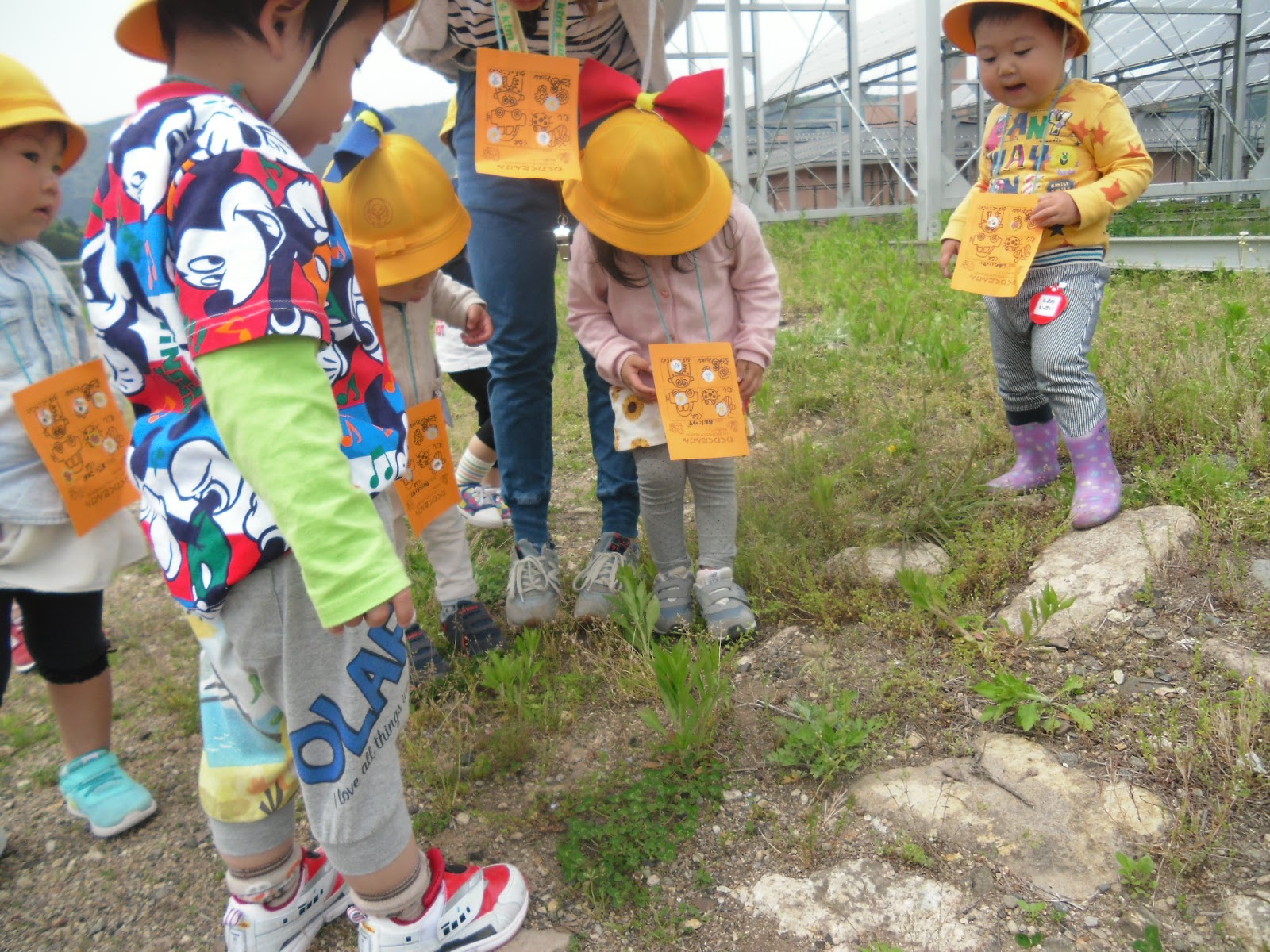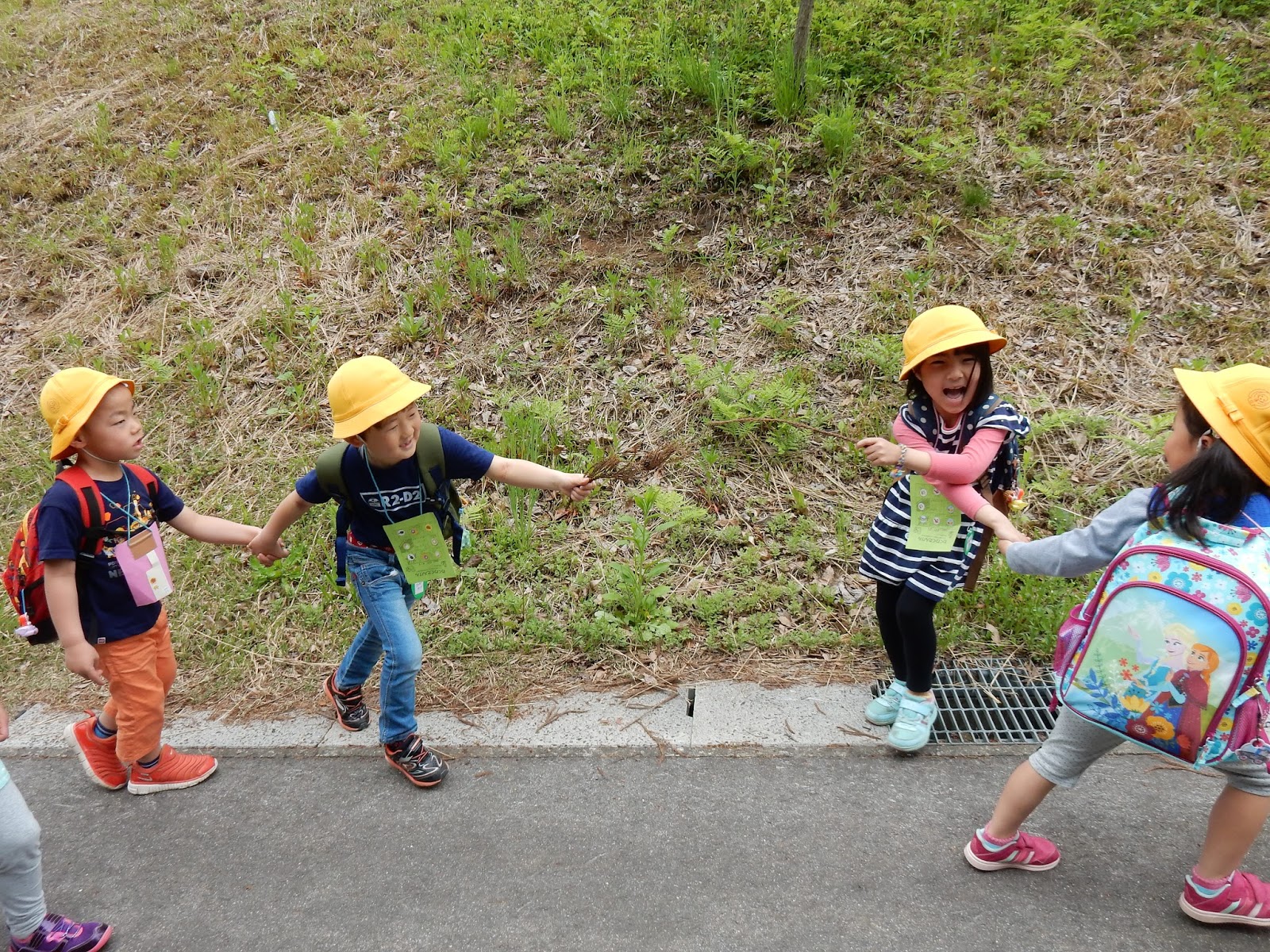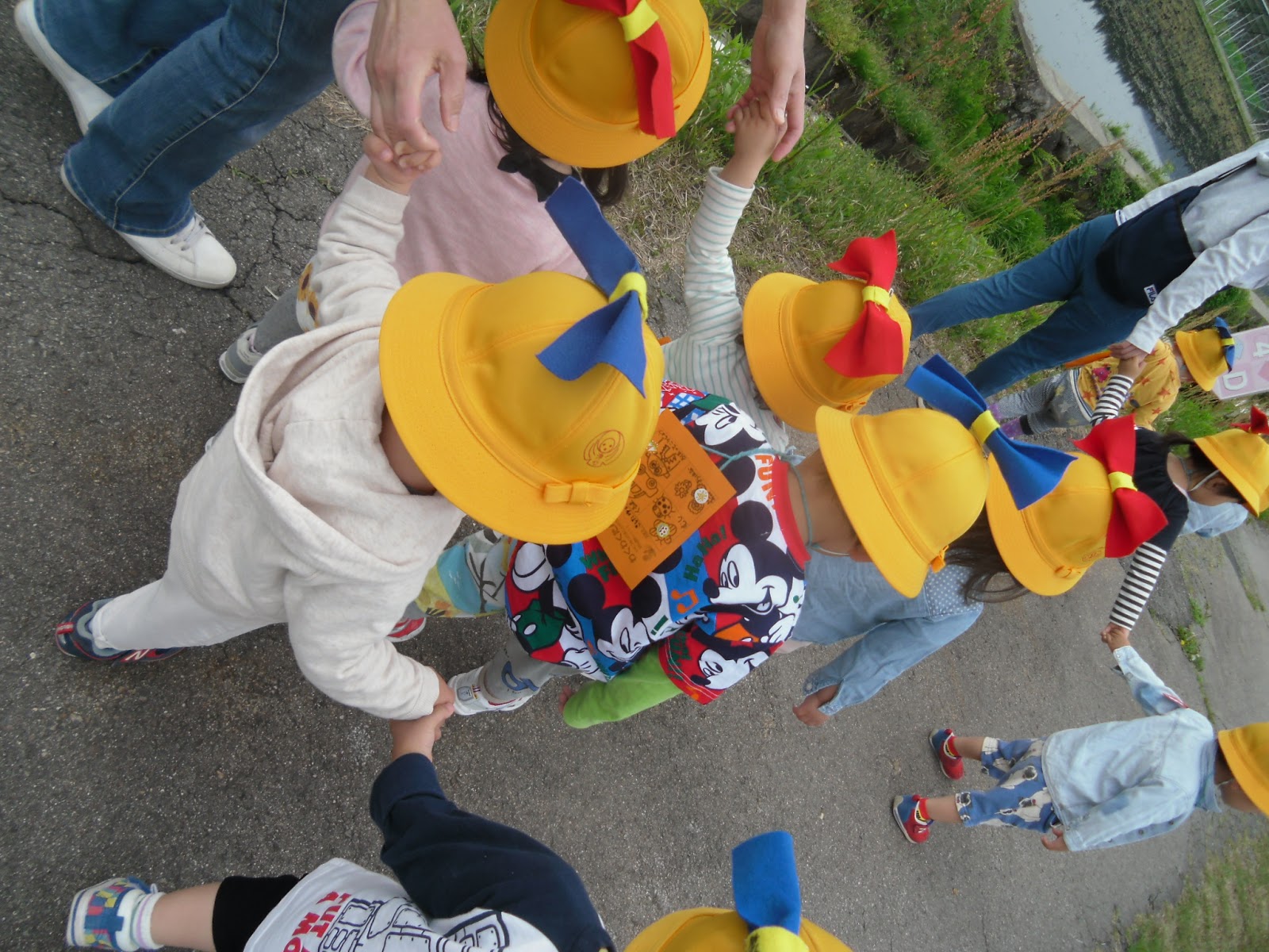 さて、小さい組のたんぽぽさん、すみれさん、ひよこさんは、園近くの農道で探検です。