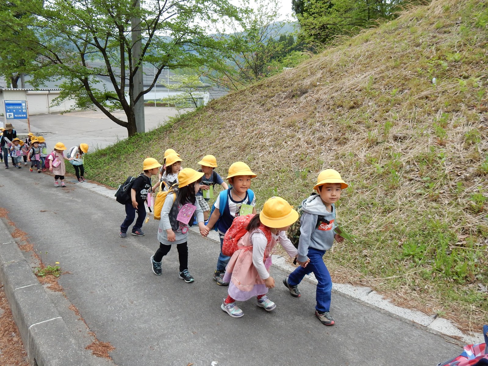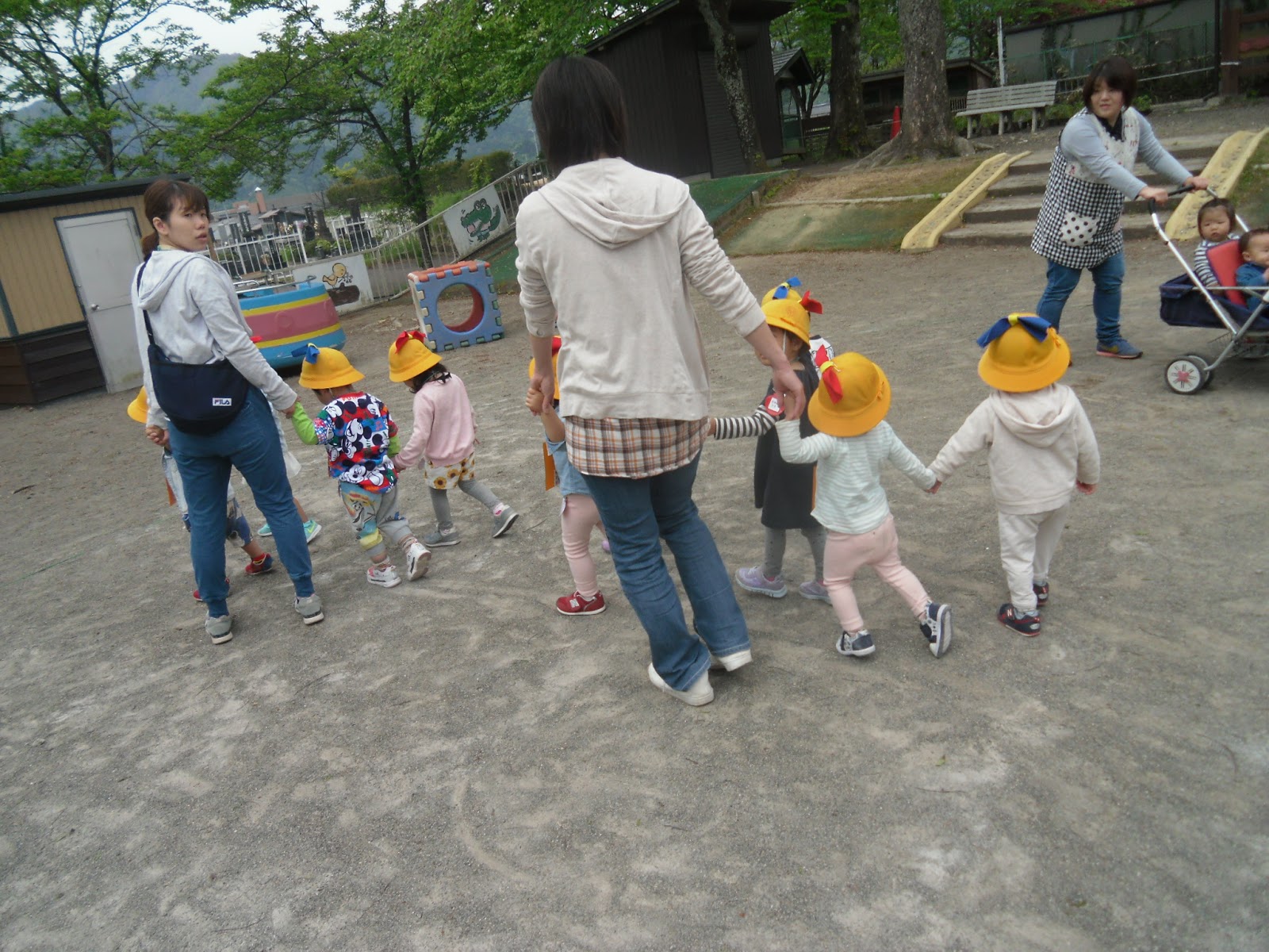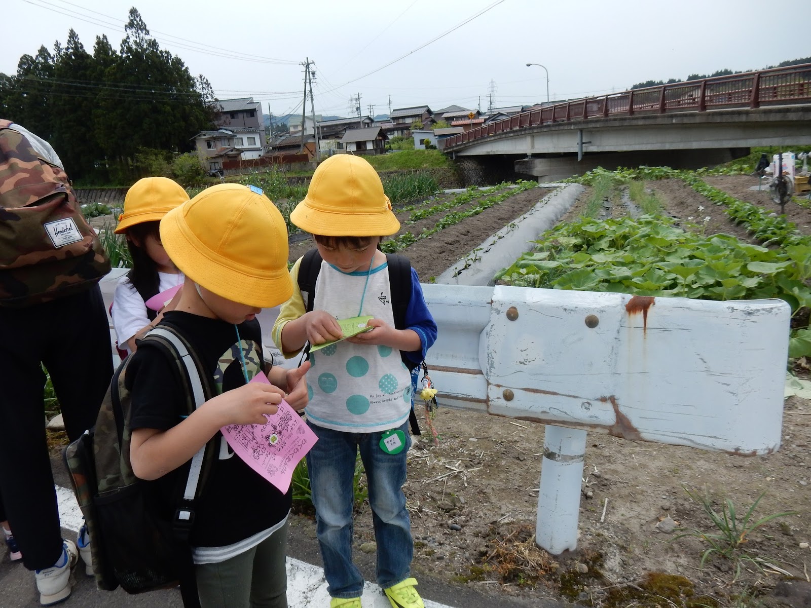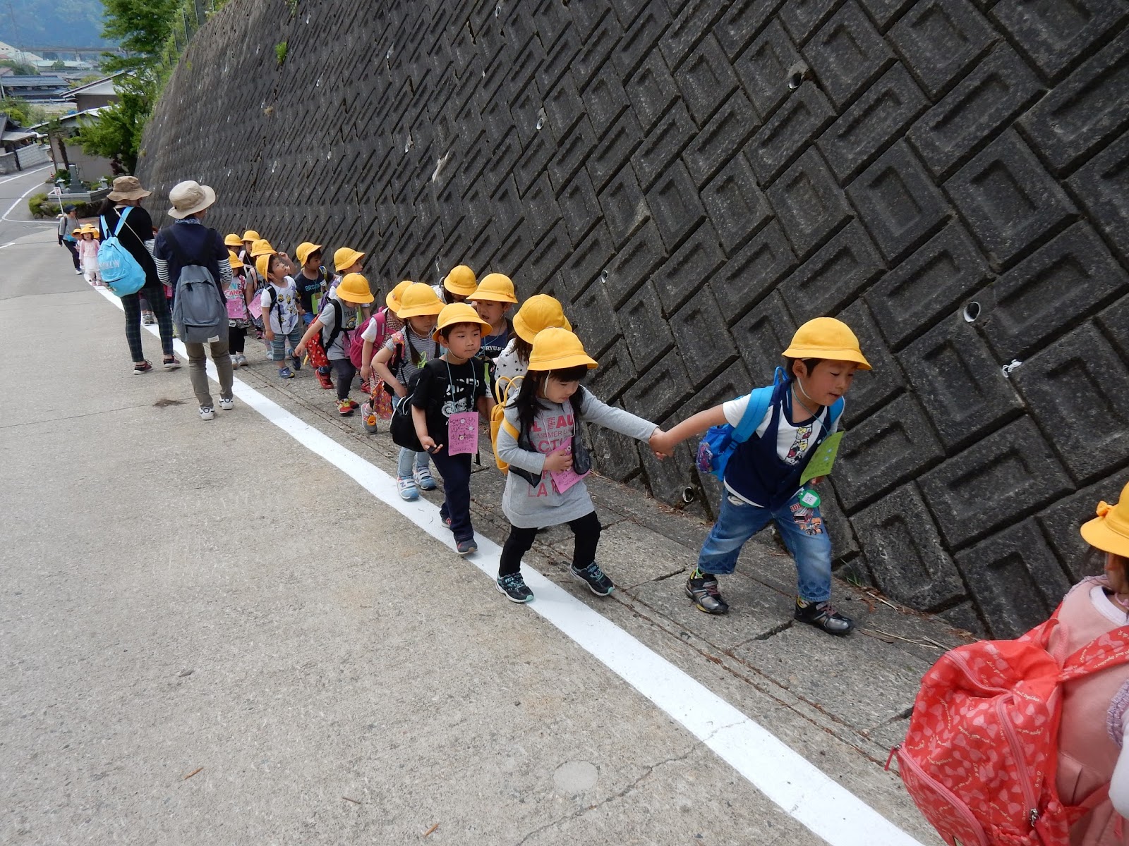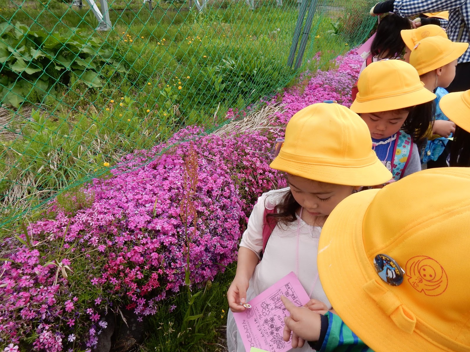 さて、小さい組のたんぽぽさん、すみれさん、ひよこさんは、園近くの農道で探検です。