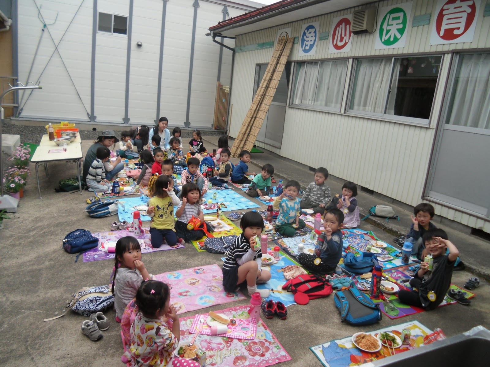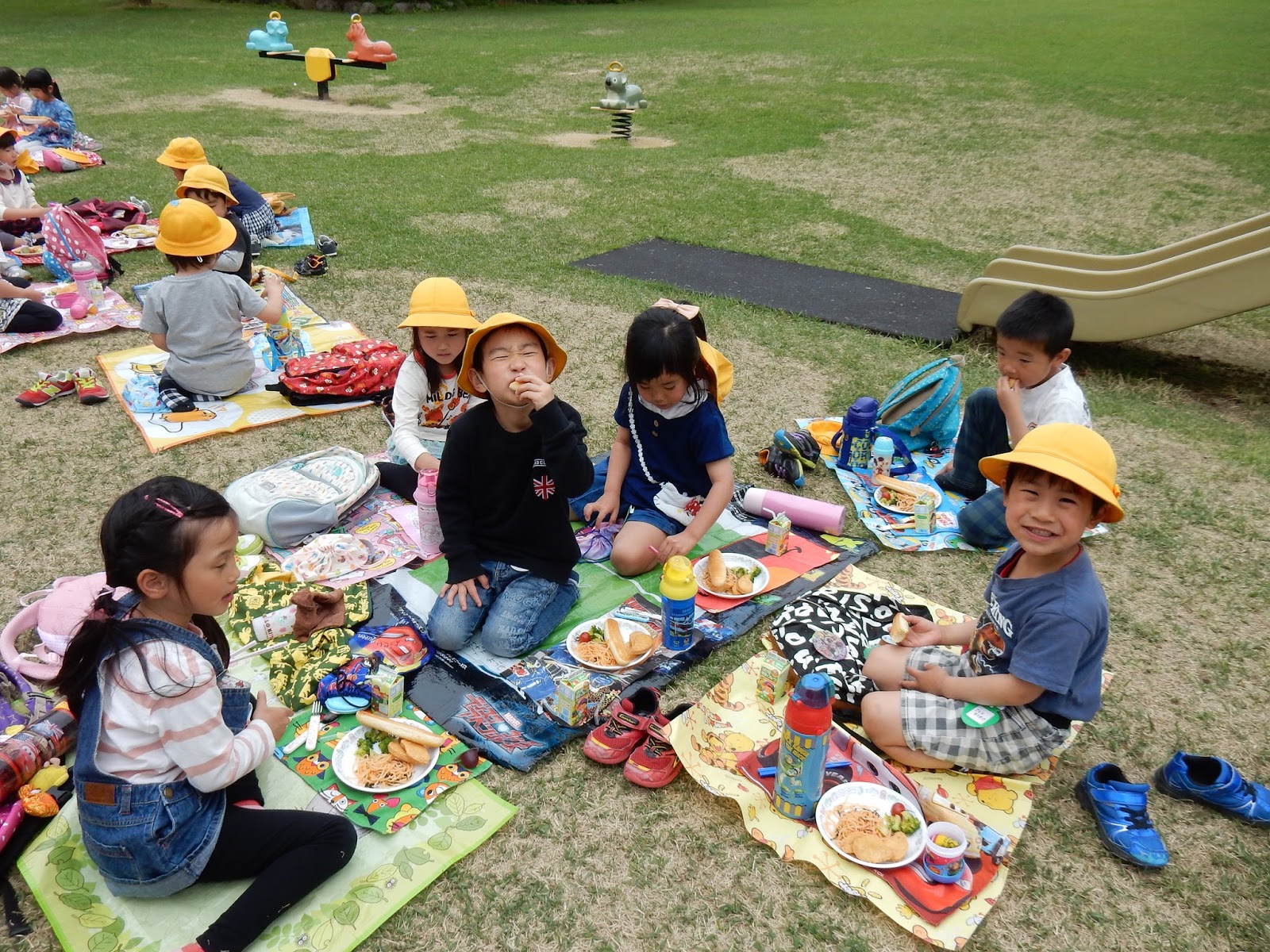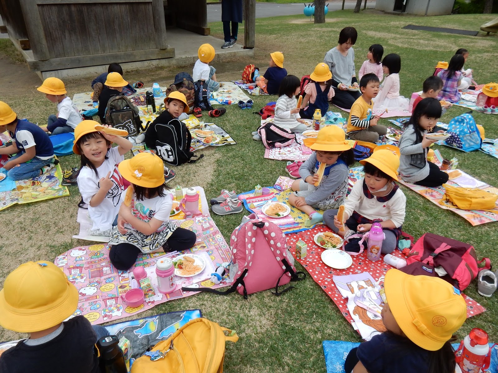 たんぽぽさんは、園舎の中庭でお給食を食べました!!