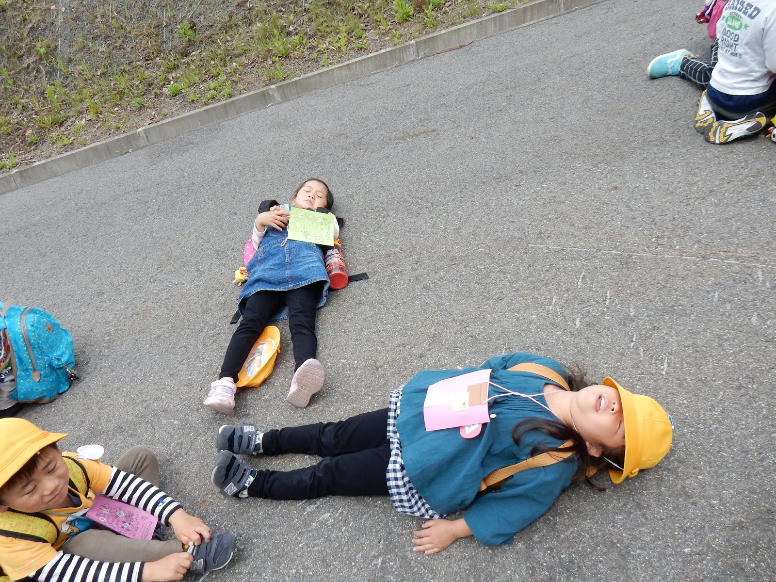 「あっ!竹があったよ!」 と、言ってもみんなが「どこ?どこ?」って聞くので、みずき先生が「ほら~!ここだよ~!」って、竹を見せてくれたよ!竹に登っていく勢いでした(笑)