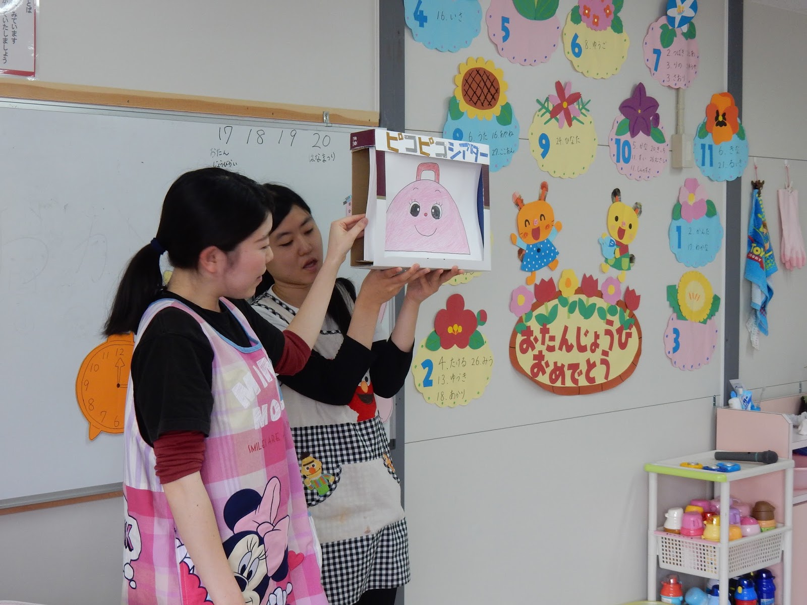 元気一杯の子ども達は、あい先生が持っている物が、なにかわかると大きな声で教えてくれます!