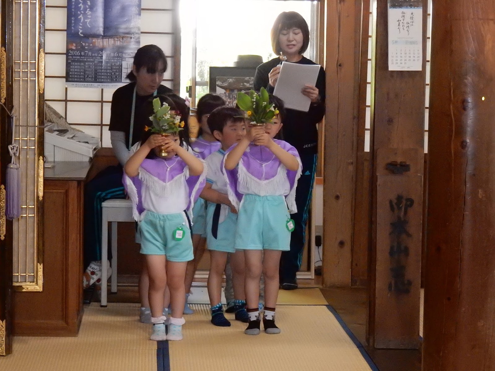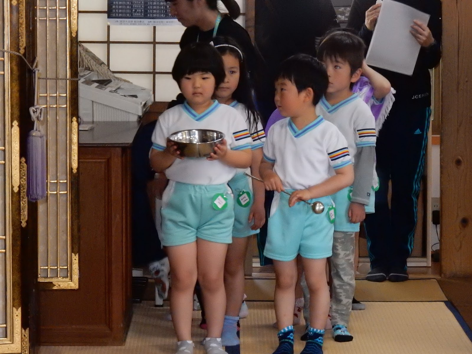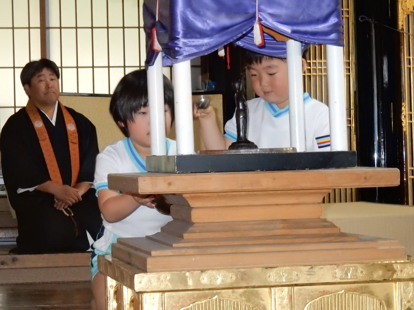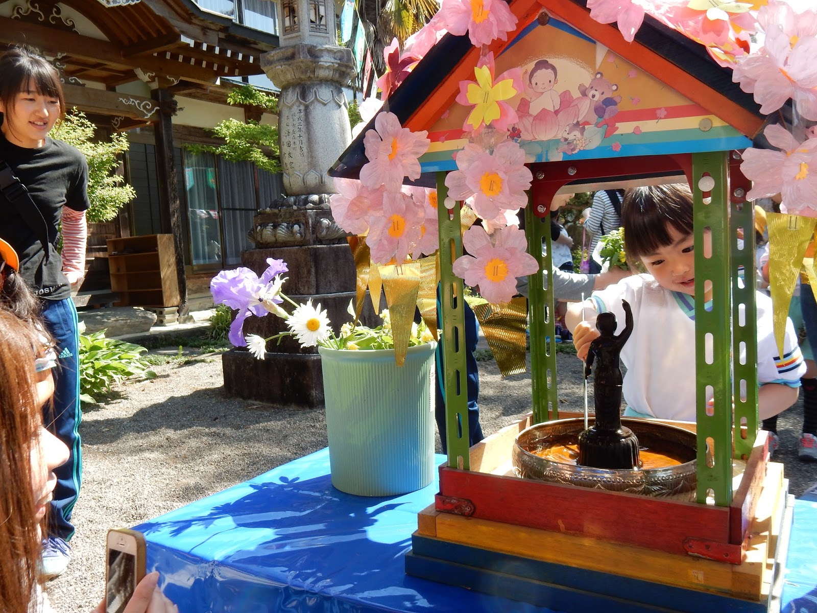 持ってきて頂いたお花を飾り、ののさまに甘茶を差し上げ、お父さん、お母さんと一緒でみんなとても嬉しそうでしたね。
