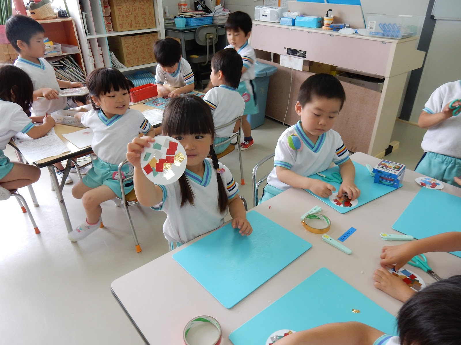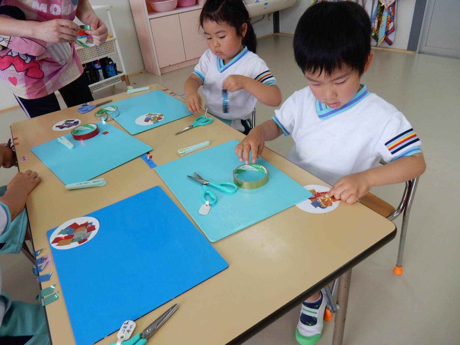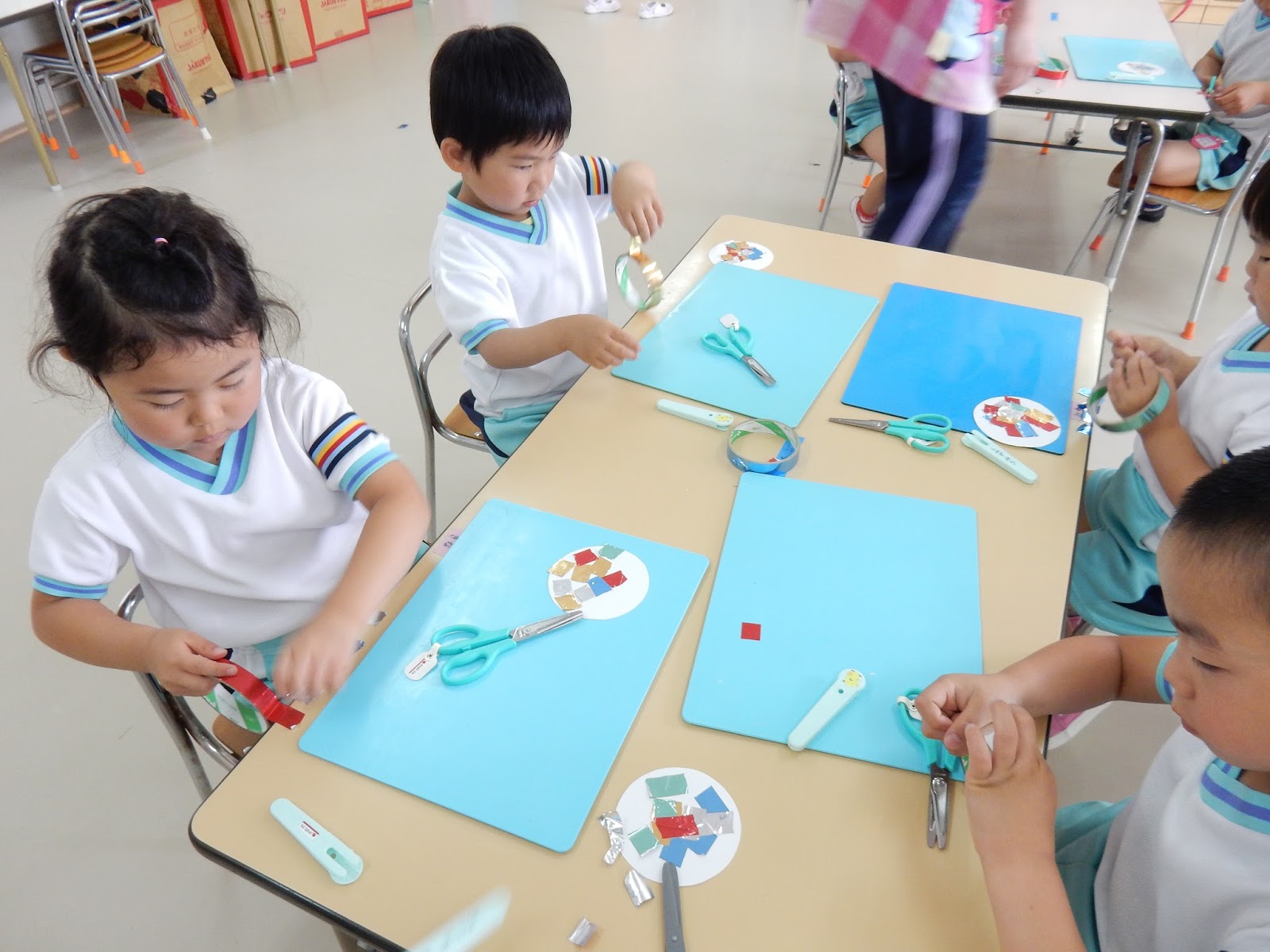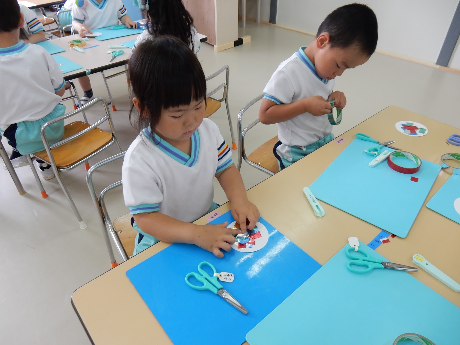 キラキラシールを切って、何やら・・・制作中。