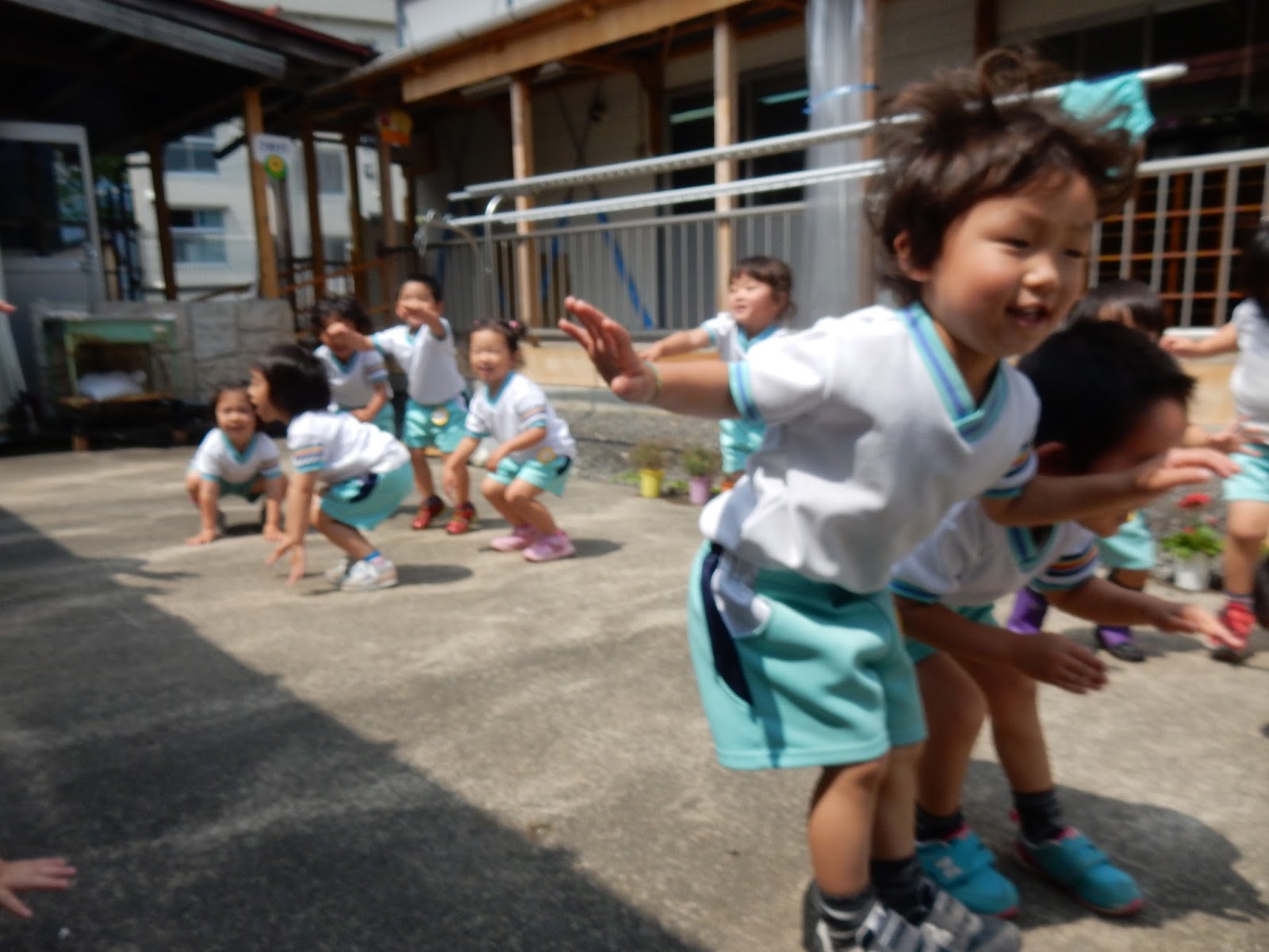 「はとぽっぽ体操」では、ピョーン!と跳んでかえるになったりします!すごい勢いで跳んできました!