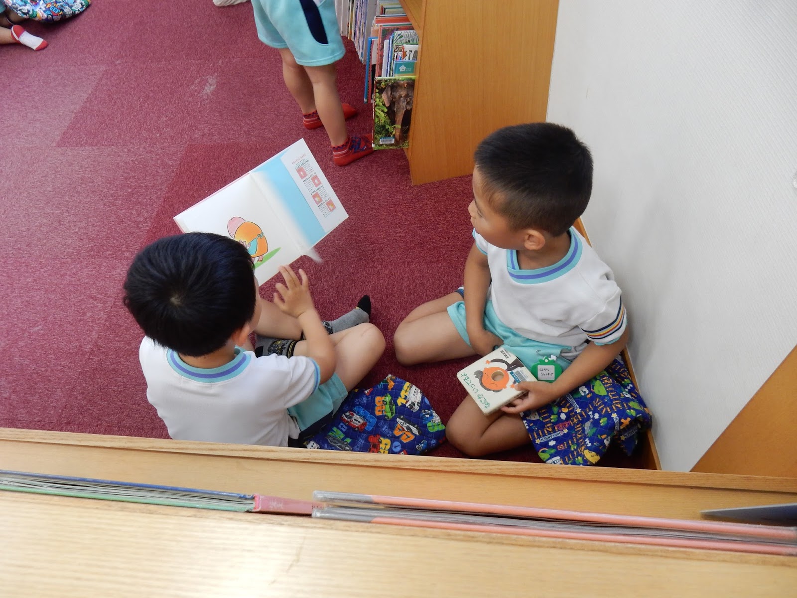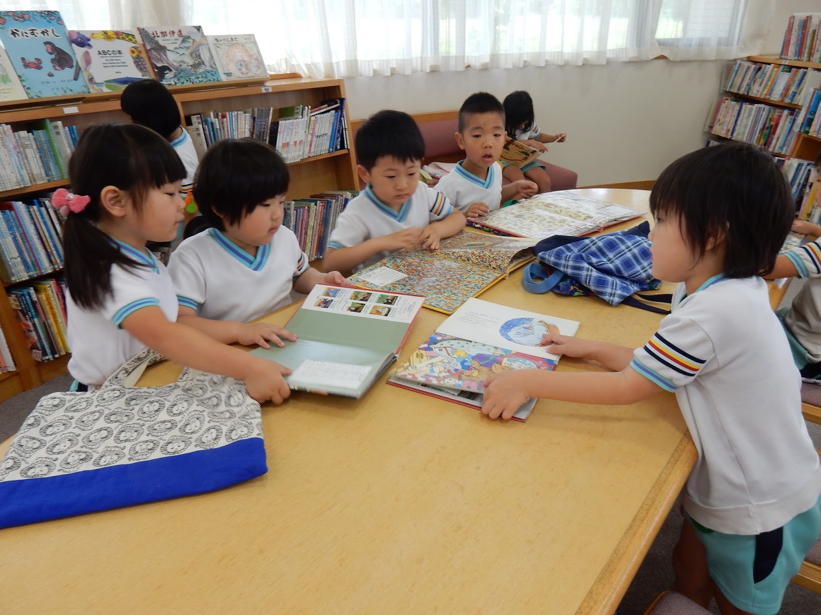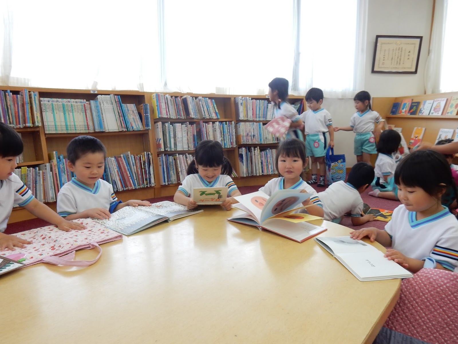 図書館は、やっぱりみんな何度か来た事もあってか、好きな絵本をよく知っていて自分で探して色々とたくさんの絵本を見ています。