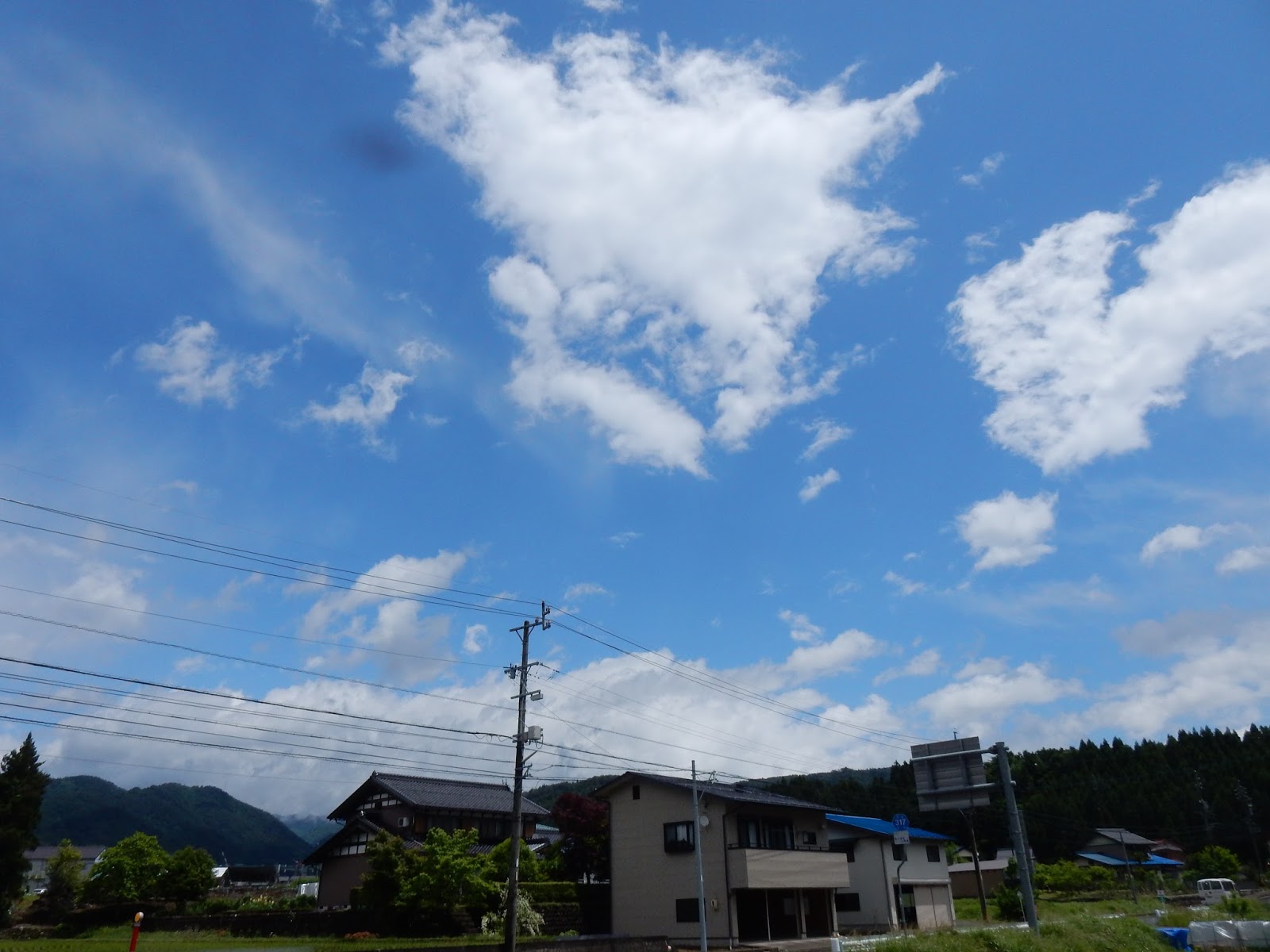 帰ってきたら、ホラ!こんなにいいお天気・・・ でも、あっ、パラパラと雨も・・・ やっぱり今日は、へんな天気でした。