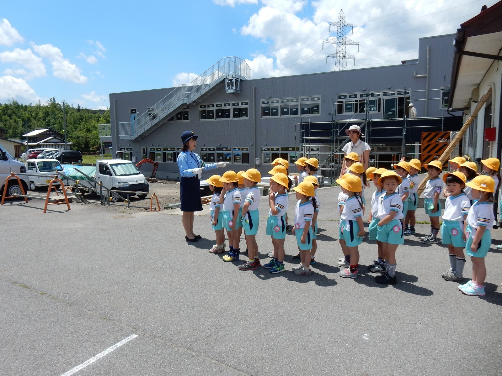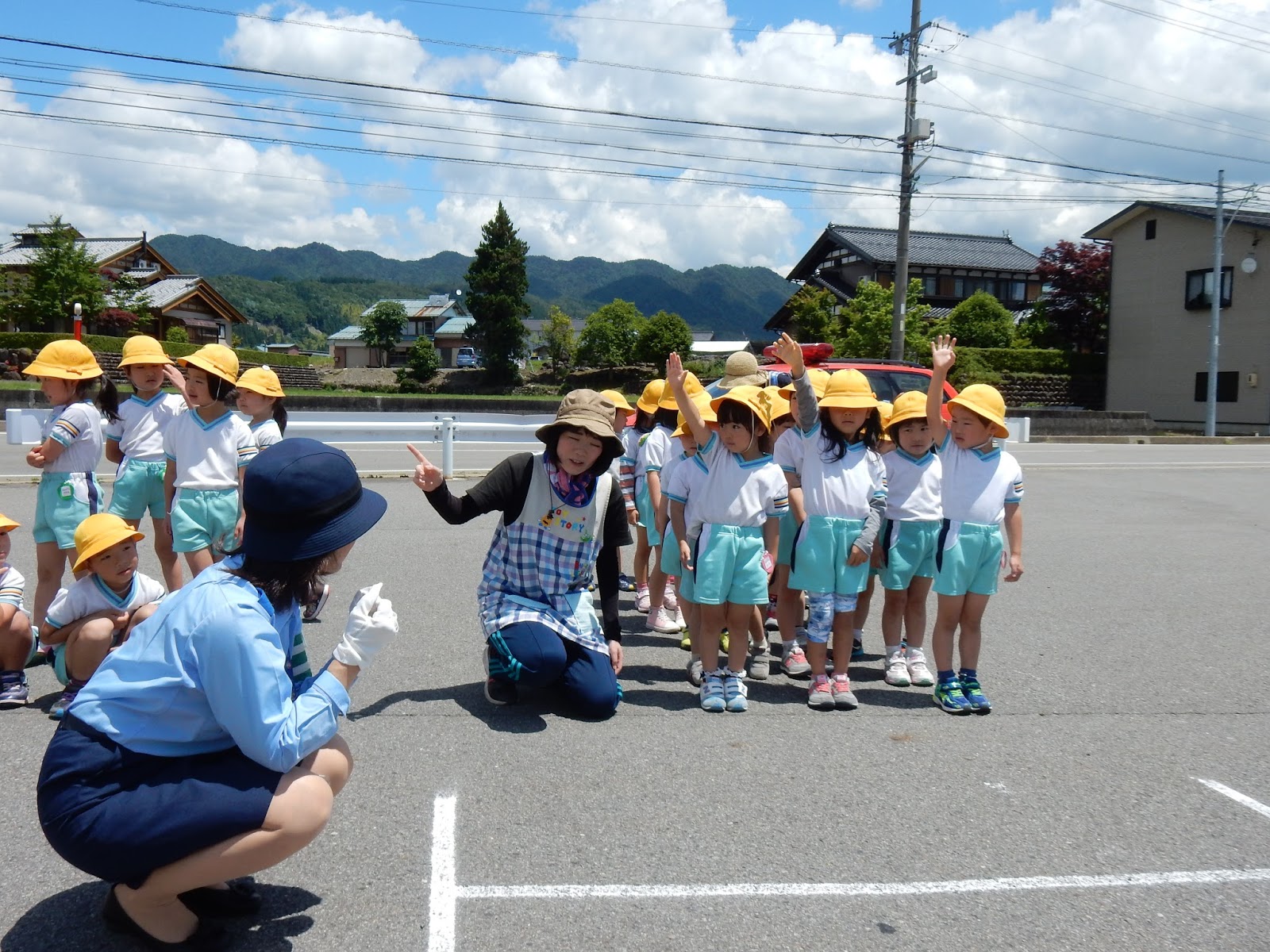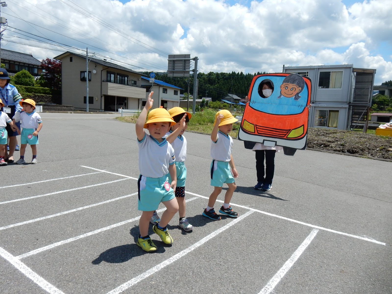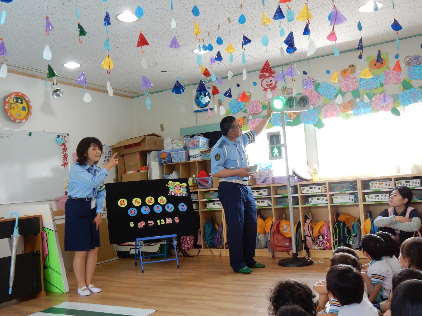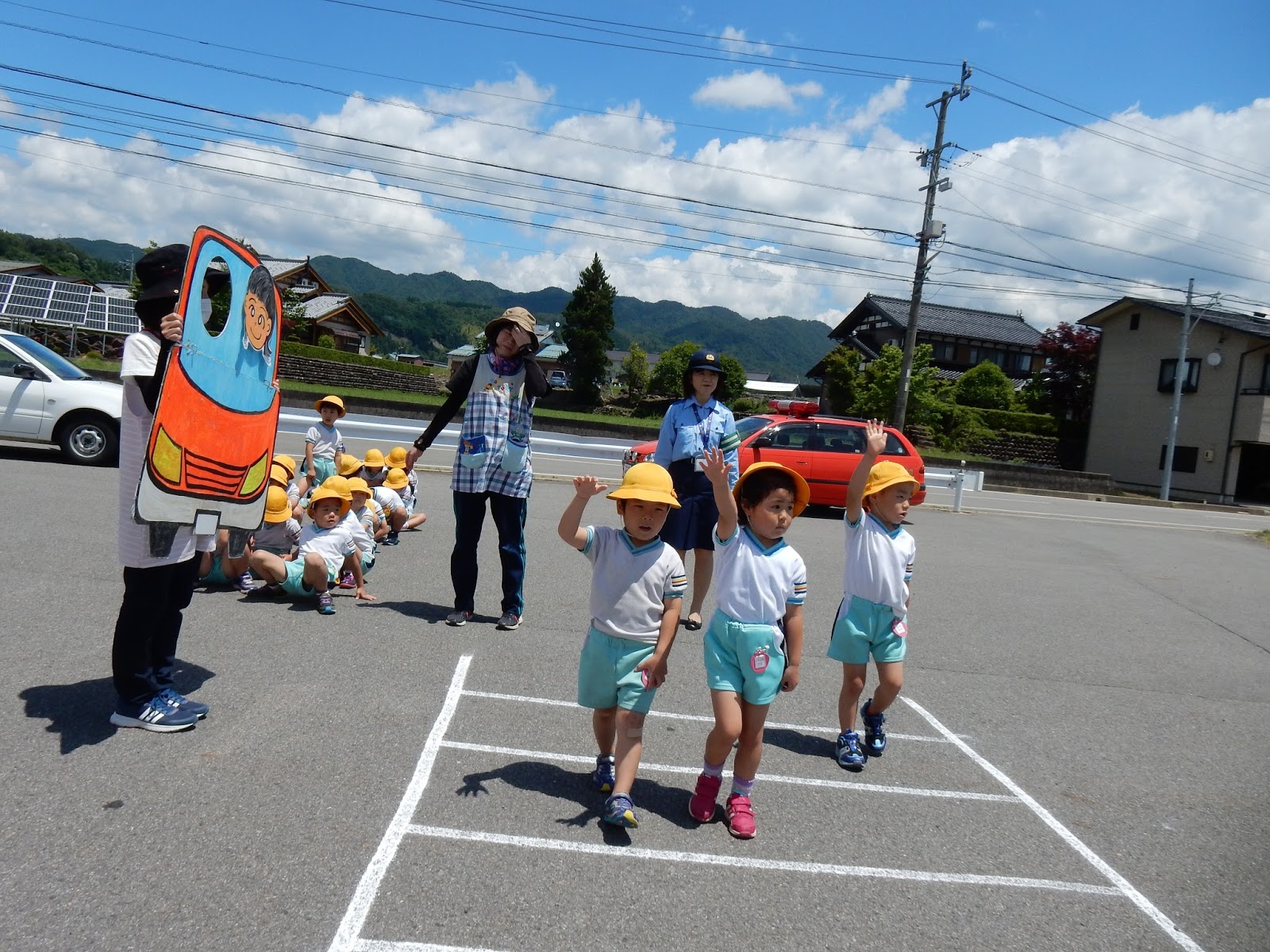 今日の交通安全のお話、道路の渡り方をしっかり守ってね!”はーい!!!”と、いいお返事でした!おまわりさんから、合格!!と◎を頂きました!!!