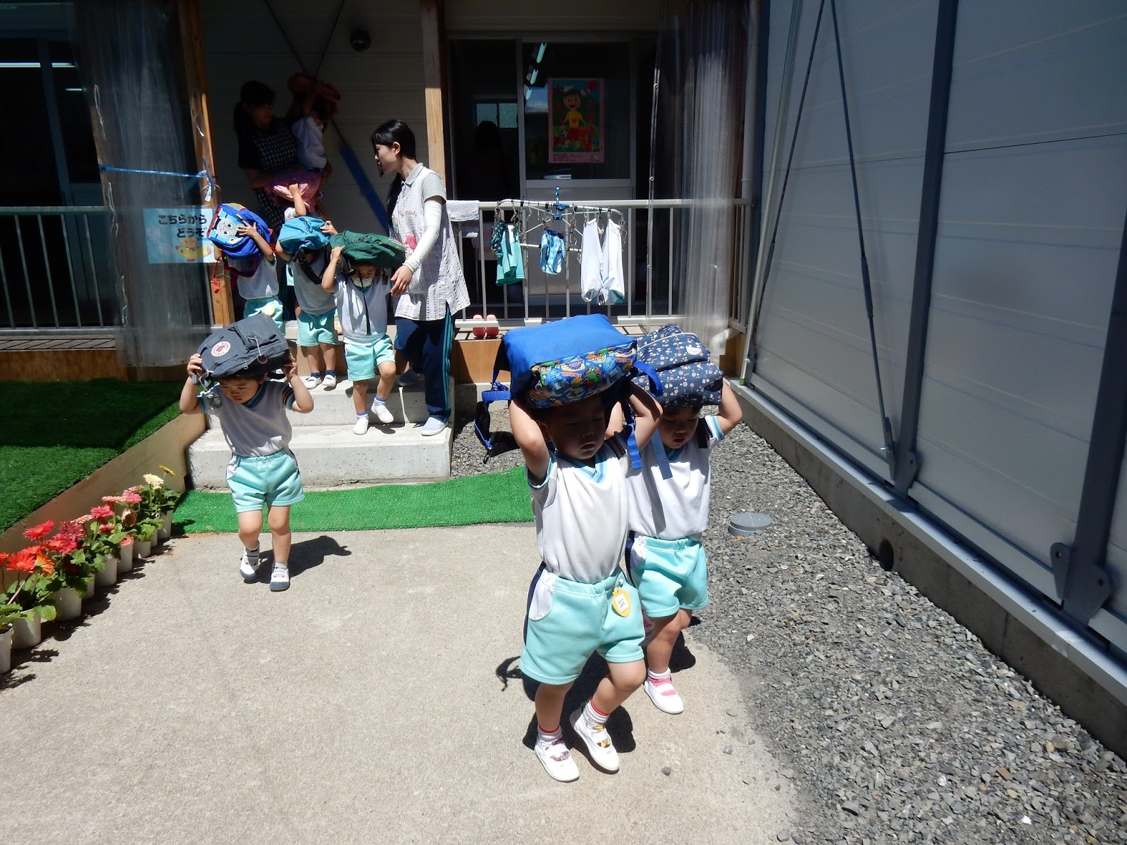 訓練とは言っても、ひまわりさんでもやっぱり慌てて焦ってしまったりします。さすがに、泣くお友達は・・・?!いなかったかな・・・
