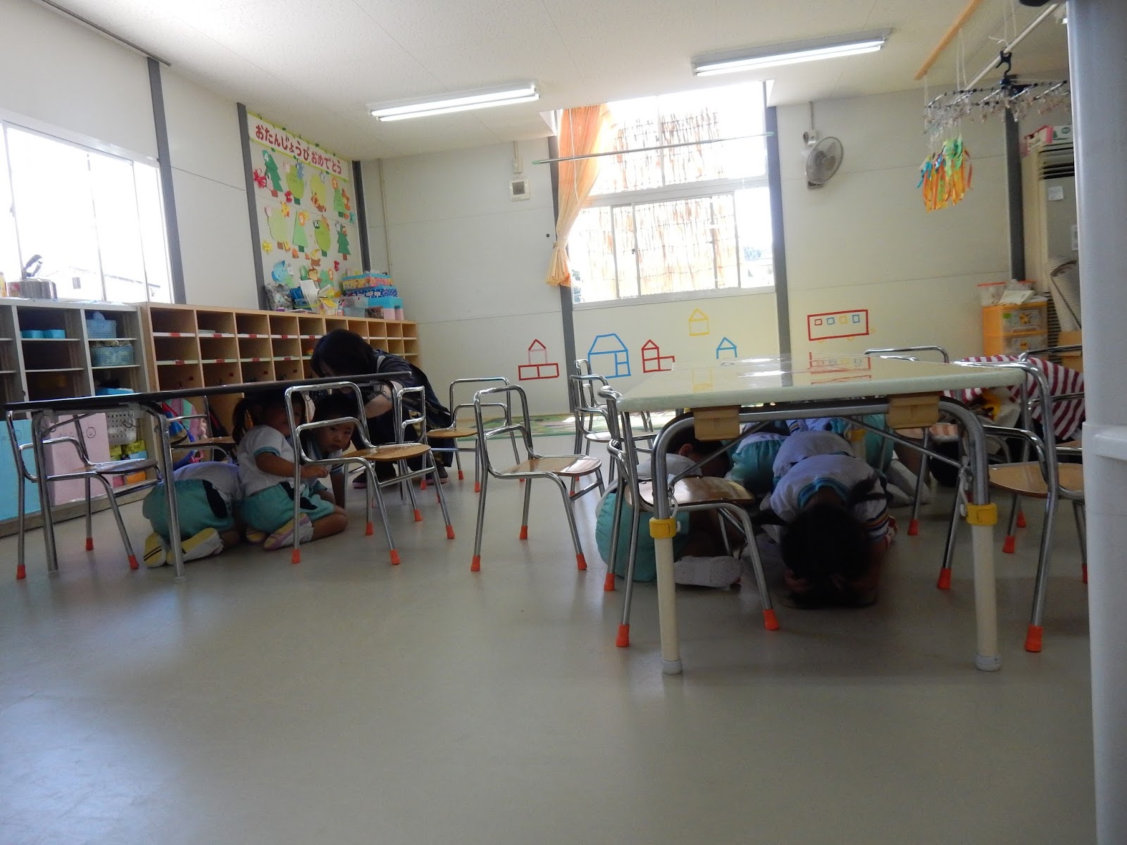 でも、さすがひまわりさん!すぐに先生の指示を聞き机の下に避難しました。