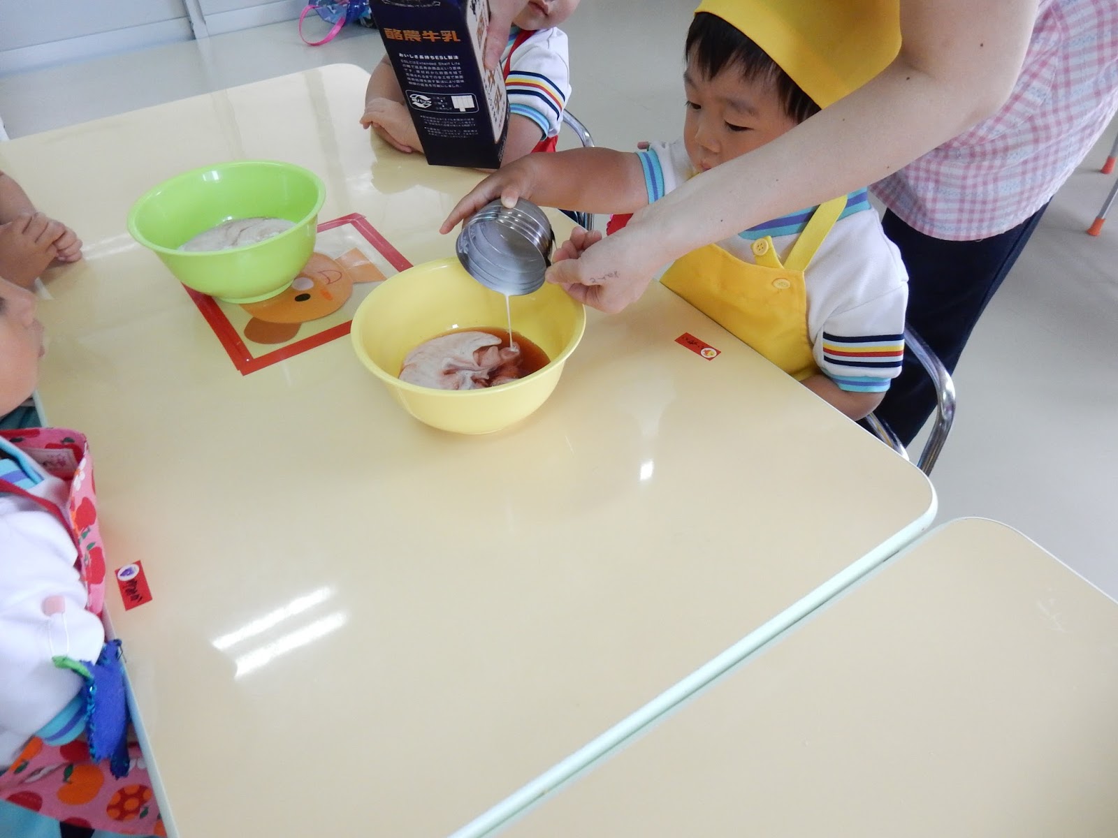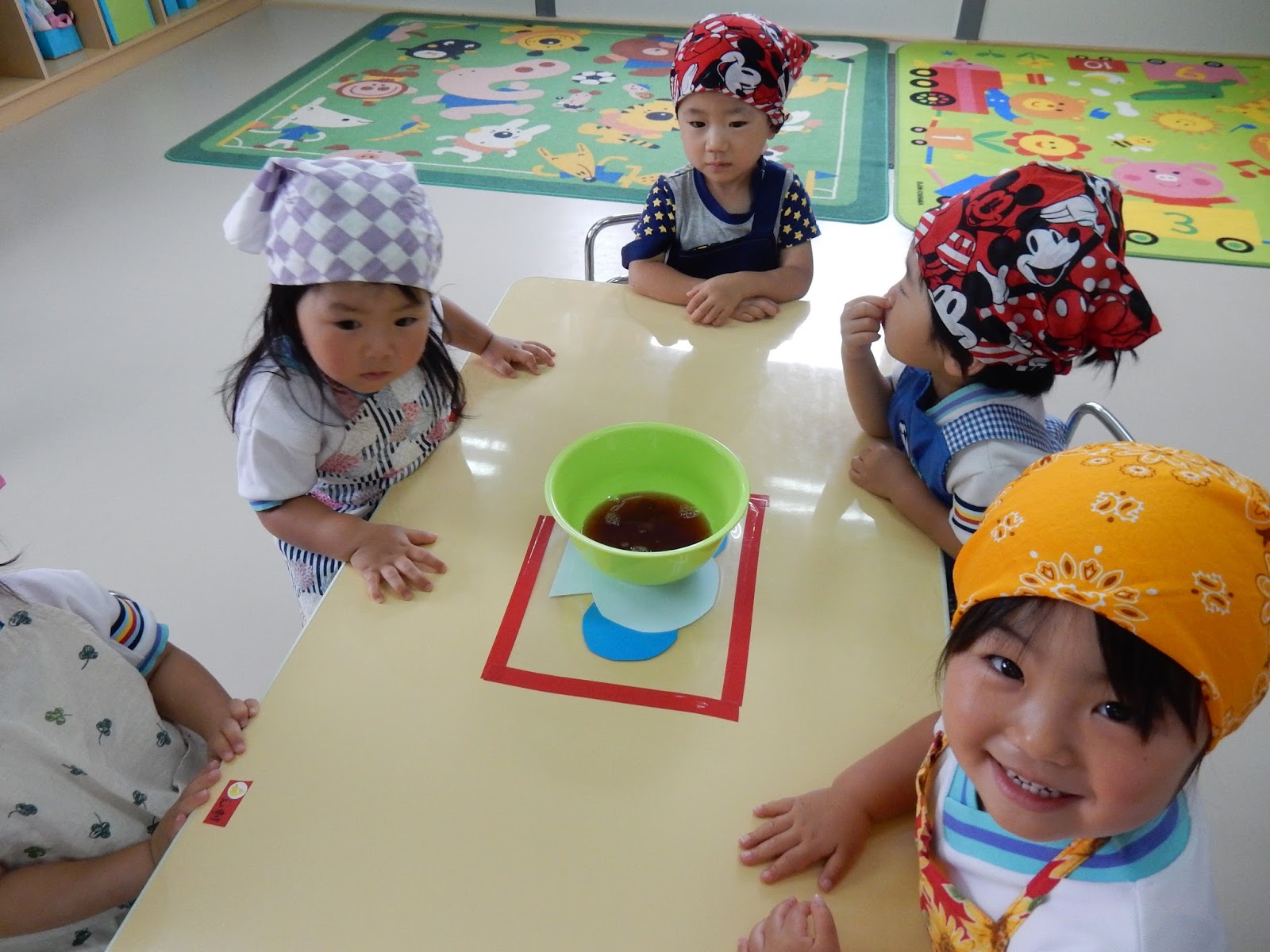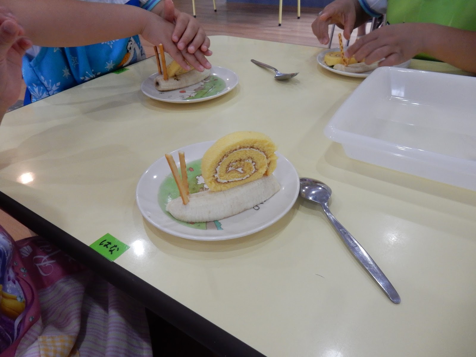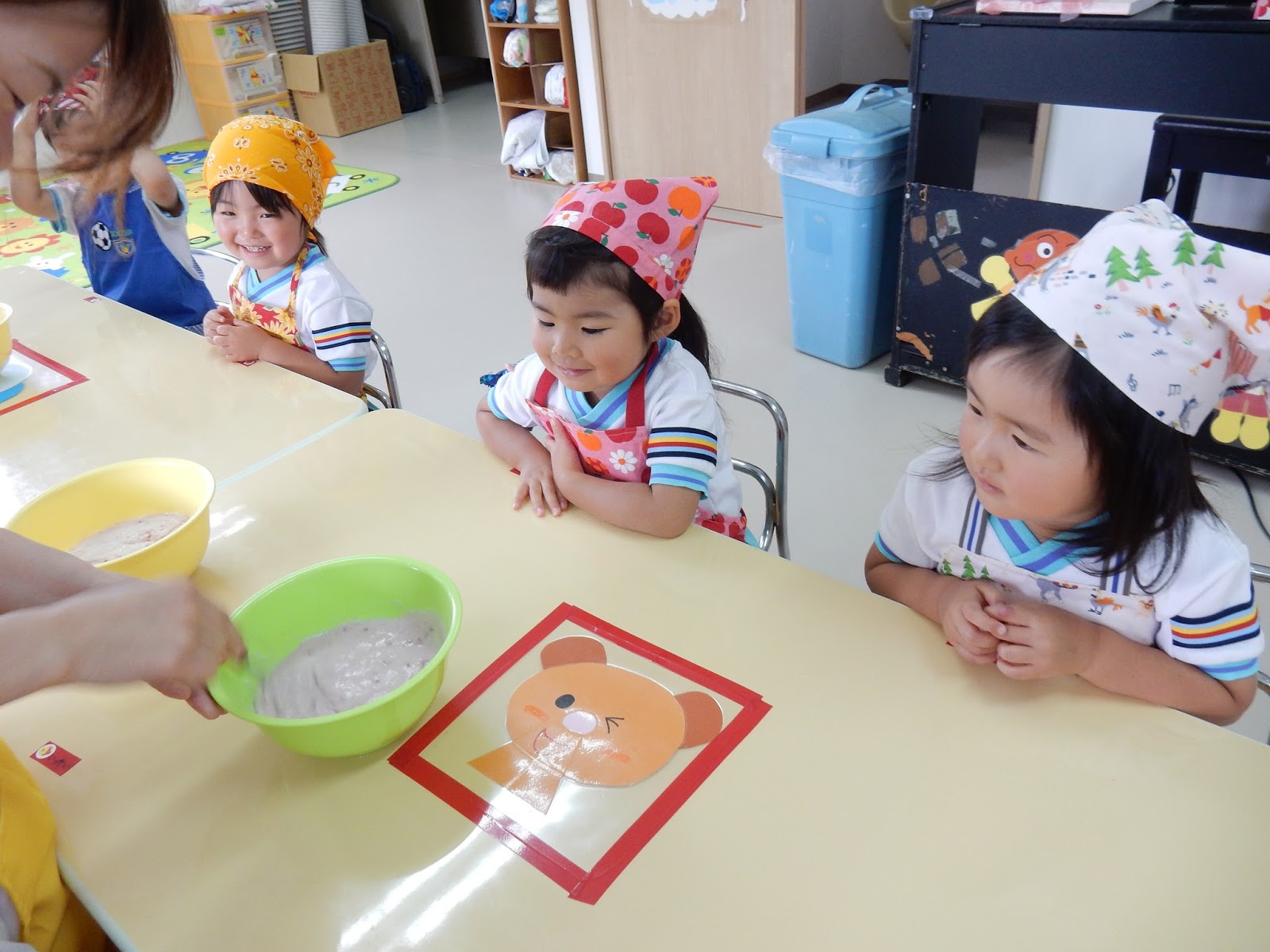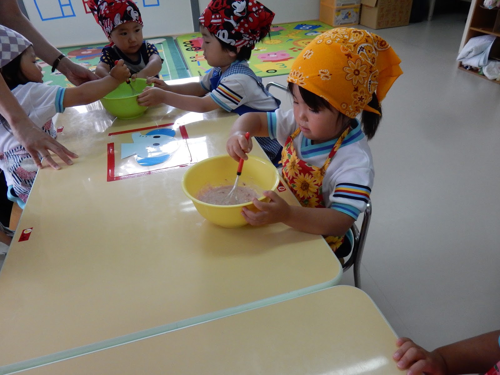 そして今日は、ひまわりさんも”クッキング”でした。ひまわりさんは、「かたつむりケーキ」を作りました!!かたつむりケーキ・・・??どんなケーキができるかな・・・