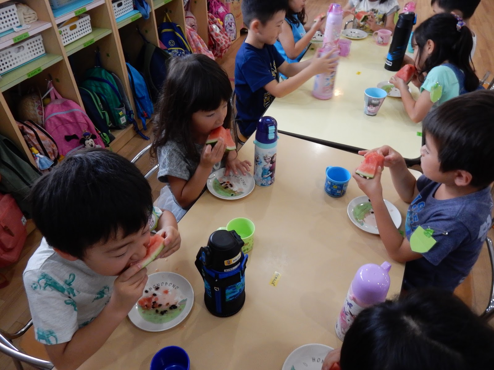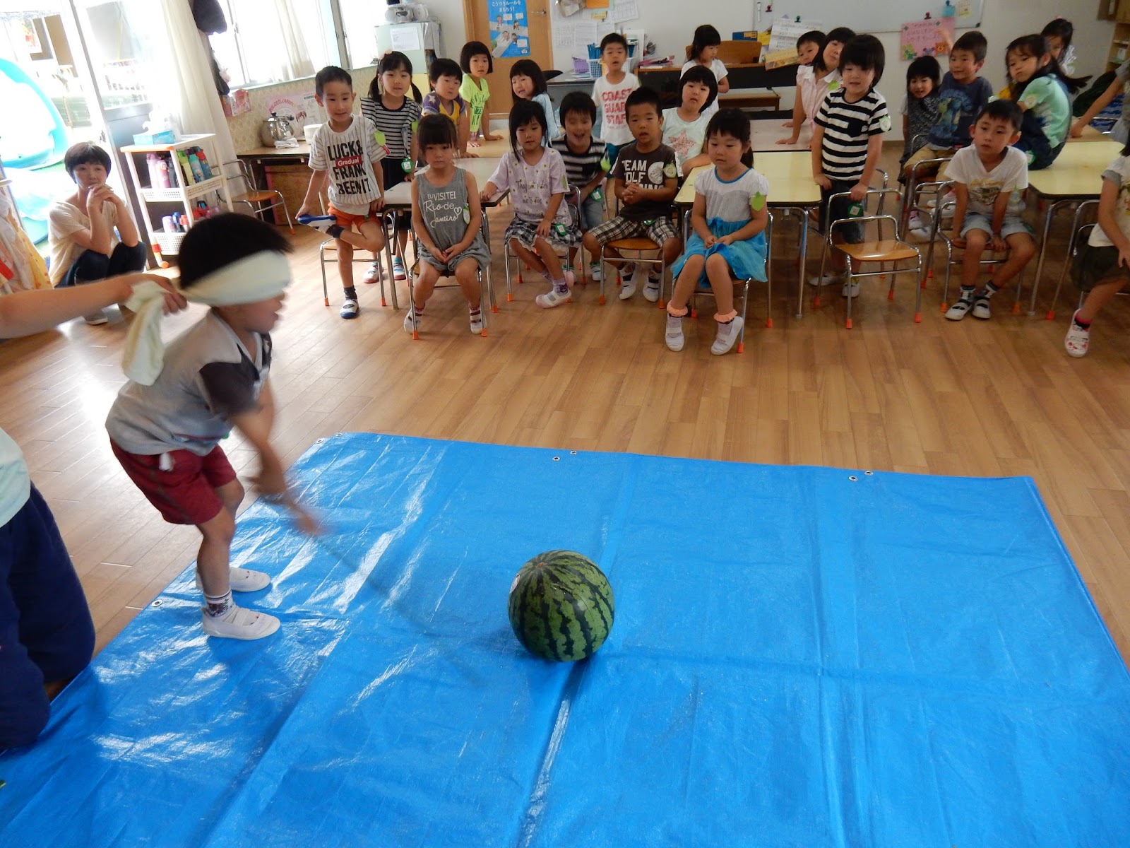 みんなの力では、すいかは割れず・・・ 最後は先生達で・・・パッカーン!!! 割れました!! ヤッター♡♡