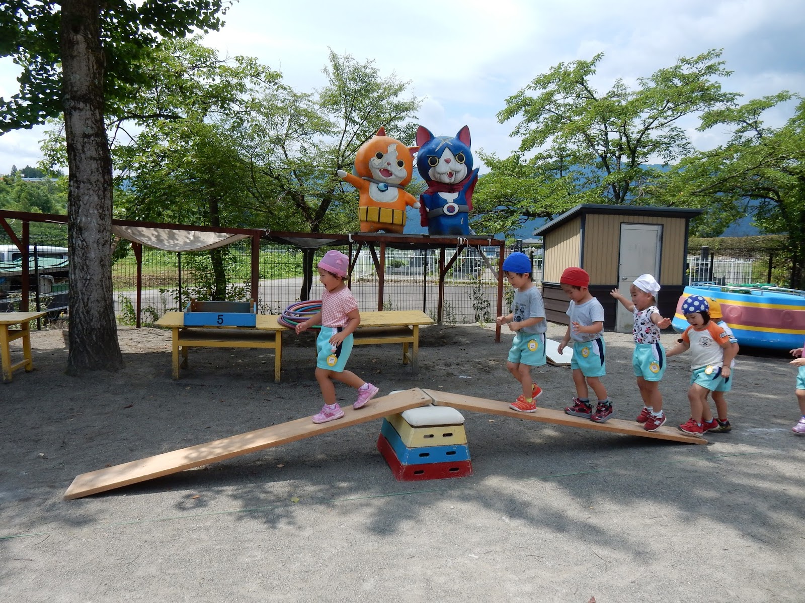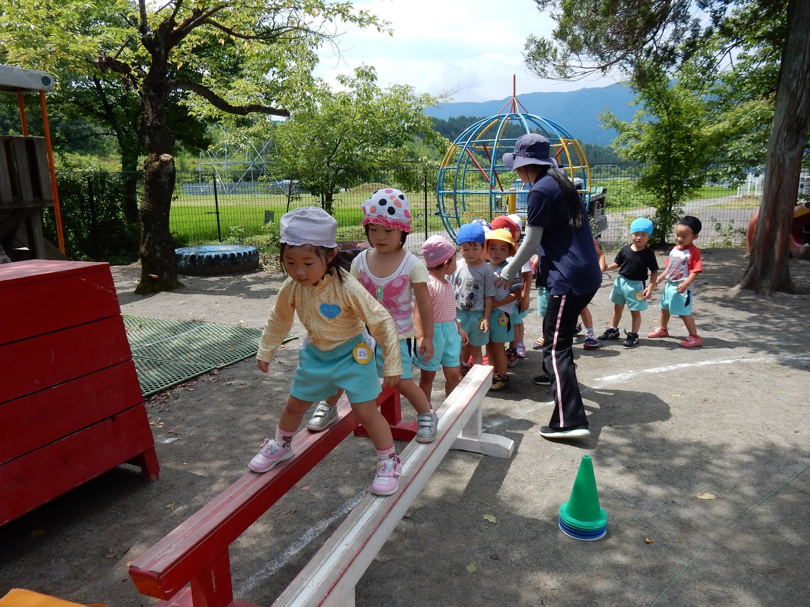 上手!上手!平均台に登って、ゆっくり進んでね!