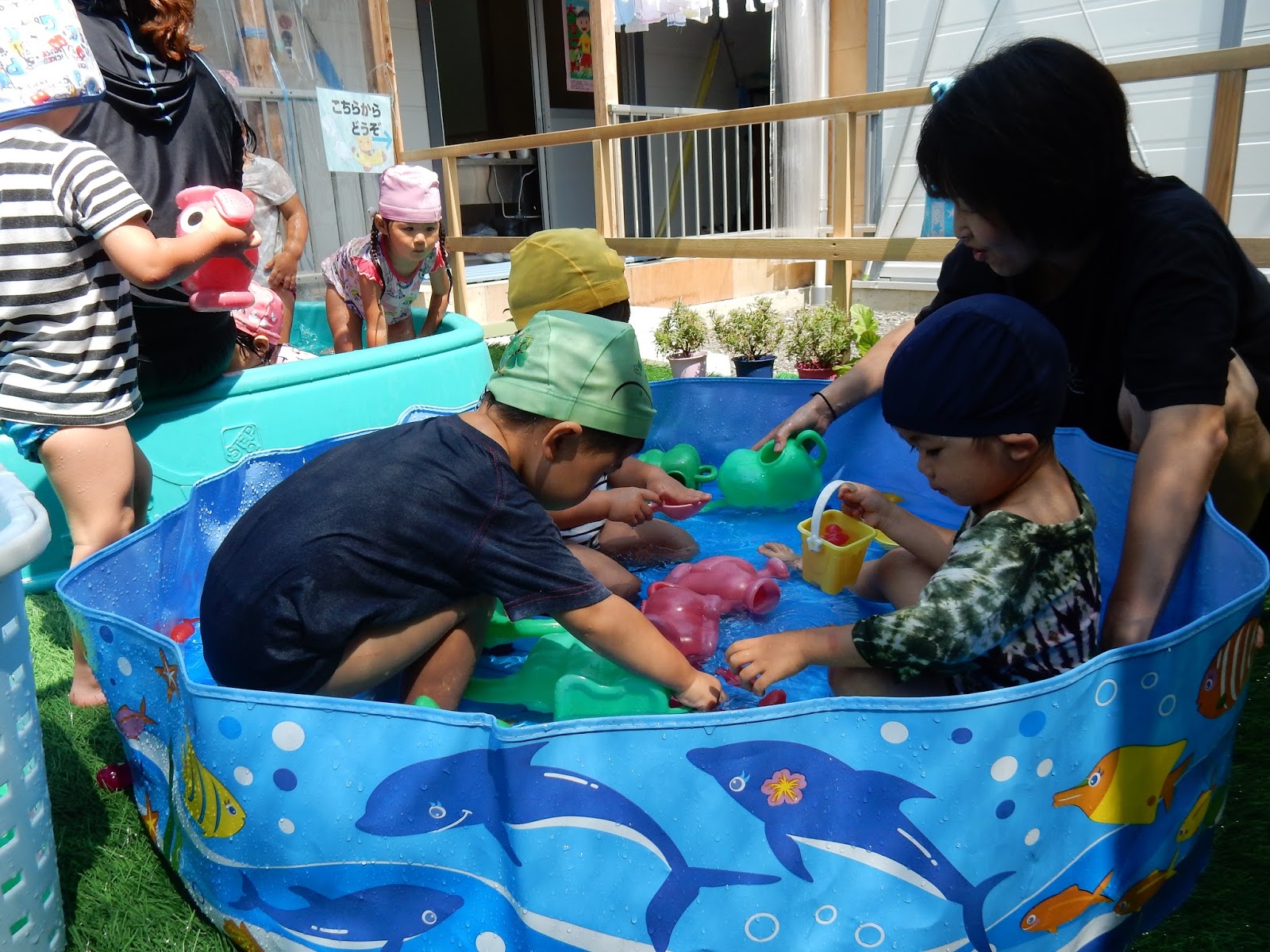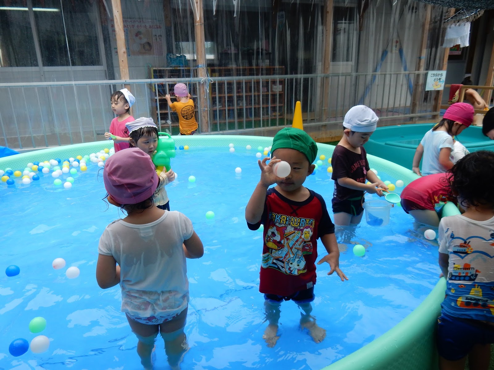 最初は大きいプールを怖がっていたお友達も、今ではみ~んな大きいプールでいっぱい遊べるようになりました!