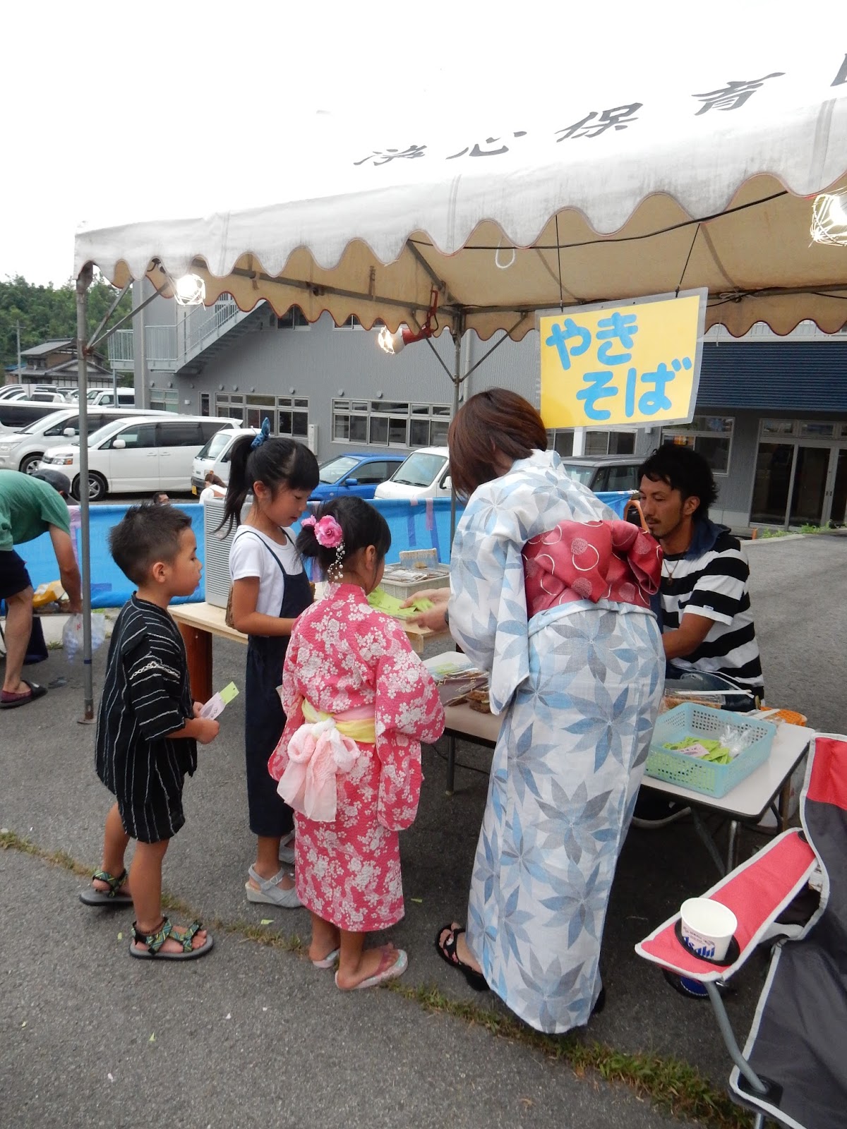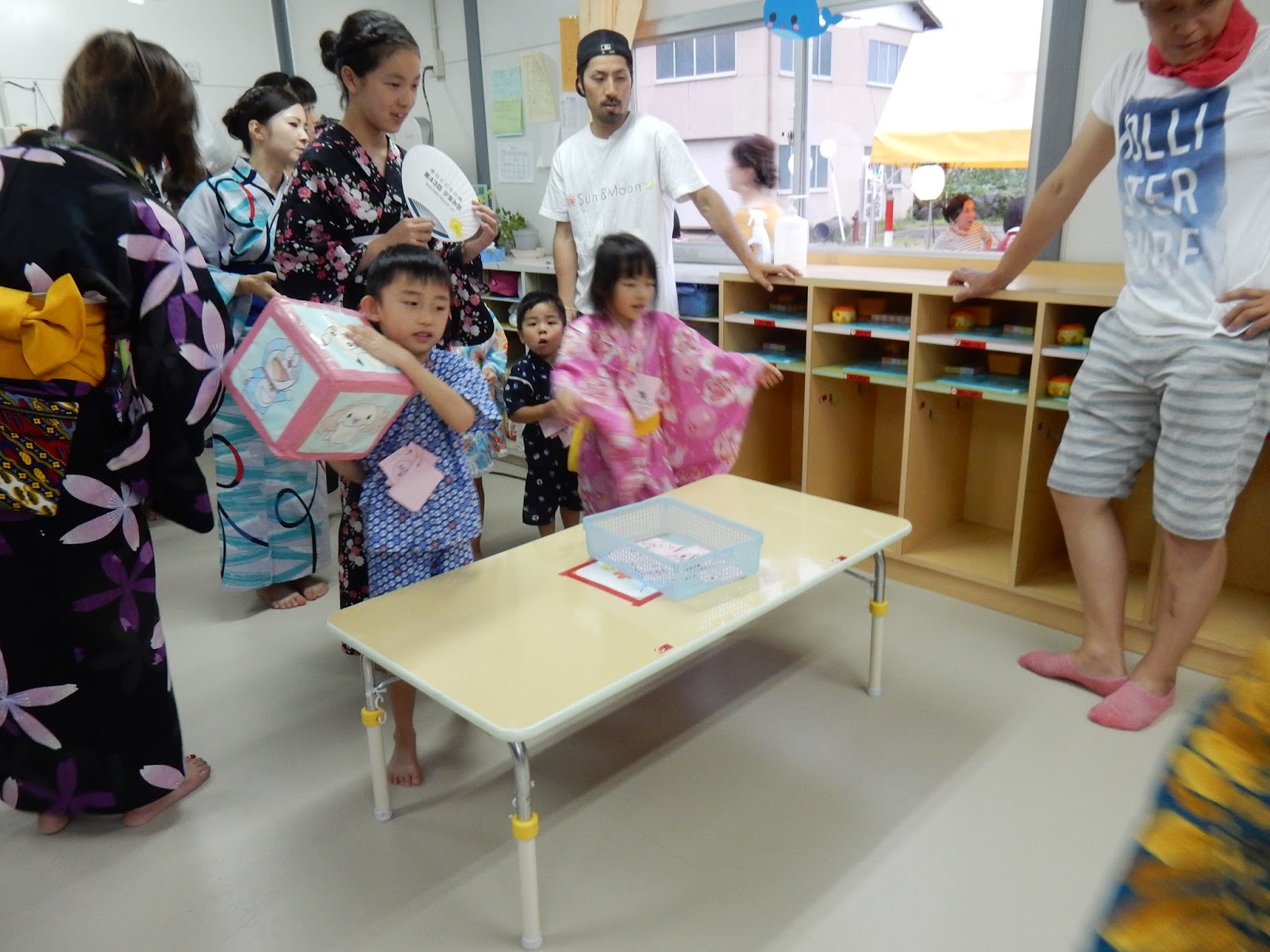 ひまわりさんにとっては、園生活最後の夕涼み会。みんなで参加できてよかったね!浴衣が可愛いね!という女の子同士の会話や、唐揚げやポテトを頬張りながら夜店のチケットを見合う男の子…楽しみにしていた1日の始まりです♪