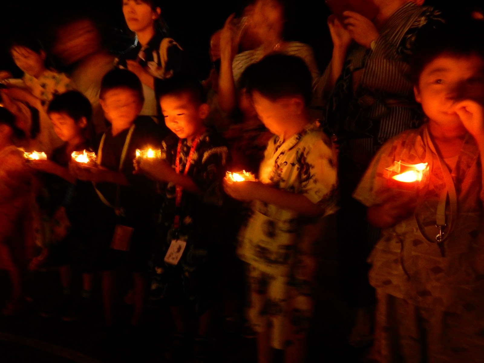 そして、雨の合間に行うことができたキャンドルサービス。これが今年の夕涼み会、一番のスペシャルだったんじゃないでしょうか。ひまわりさんが1つ1つ大切そうに持つキャンドル。素敵なキャンドルフォルダーを作成していただき、こちらは子ども達以上に、保護者さんから感動の声が上がっていたように感じました。例年のたいまつに灯す迫力ある火もきれいですが、キャンドルならではの優しい灯りを見ていると、本当に気持ちがほっとするような雰囲気でしたね。