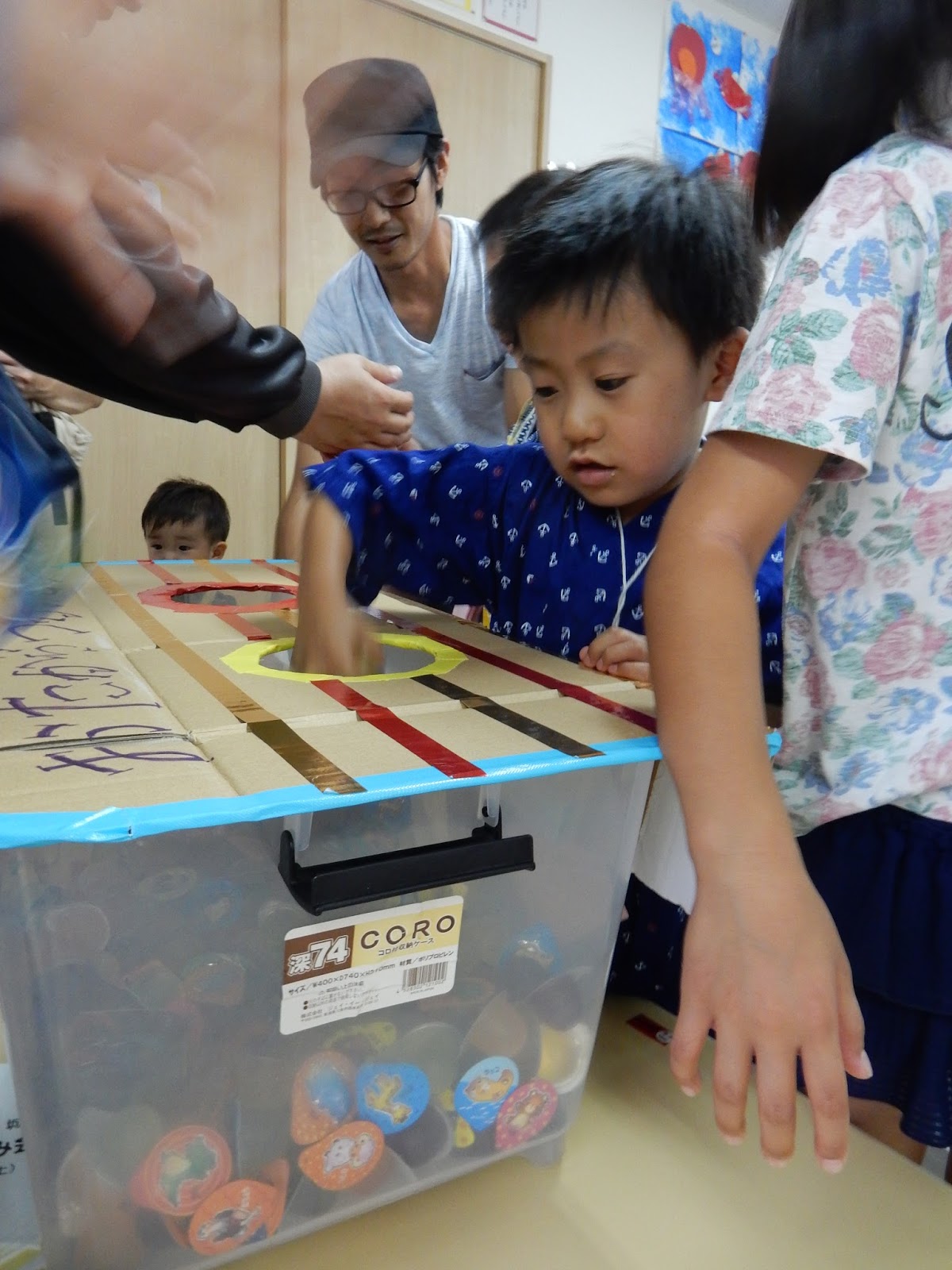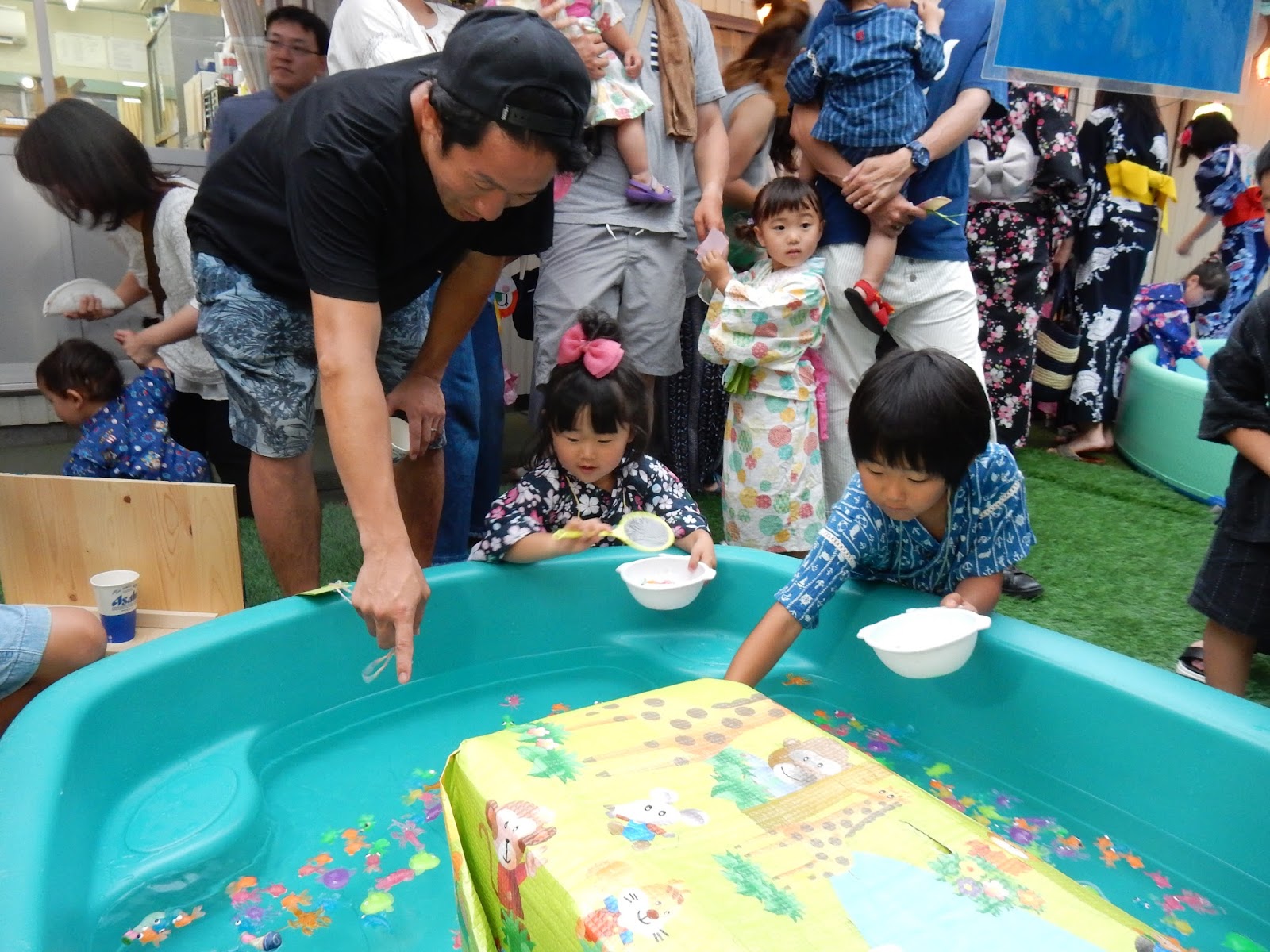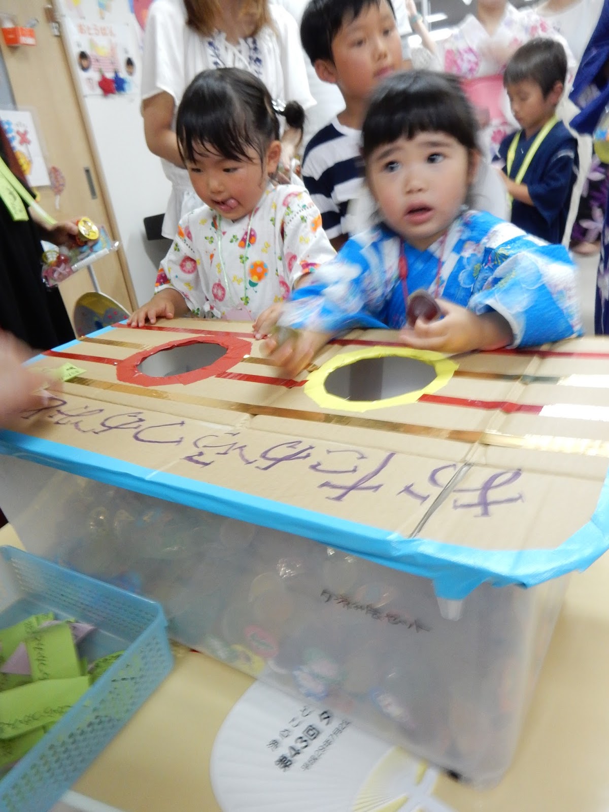 ゲームコーナーも大人気でしたね!驚いたのは、みんな金魚すくいが上手!敗れるポイを使っているたんぽぽさんも、10匹ほどすくっていました!一箇所やぶれても、他の部分を使ってすくい続ける強者も!!(笑)こちらは、遊びに来てくれていた小学生のお兄さんお姉さんも楽しんでいってくれたかな?♪