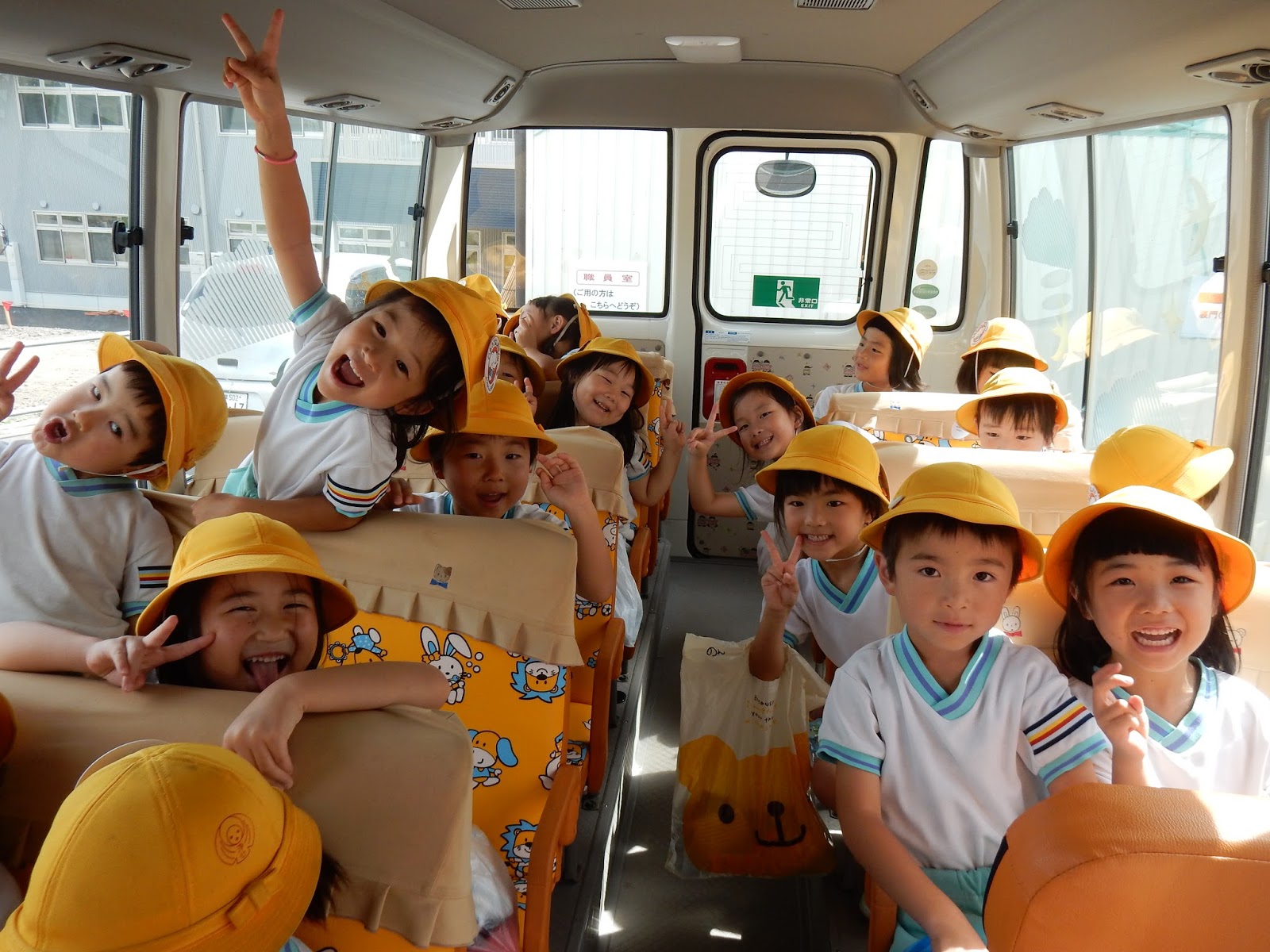 金曜日、午前保育を終え、帰宅後に準備を済ませて登園したひまわりさん。早速、園外保育に出かけます。その前に、しっかりと荷造りを自分で行います。ビニール袋の中には、温泉で使うタオルや、着替えが入っています。みんな、忘れ物はなかったかな?出かける前のバス車内。すでにテンション上がってますね!!(笑)ここから八幡の、大滝鍾乳洞へ向かいます。
