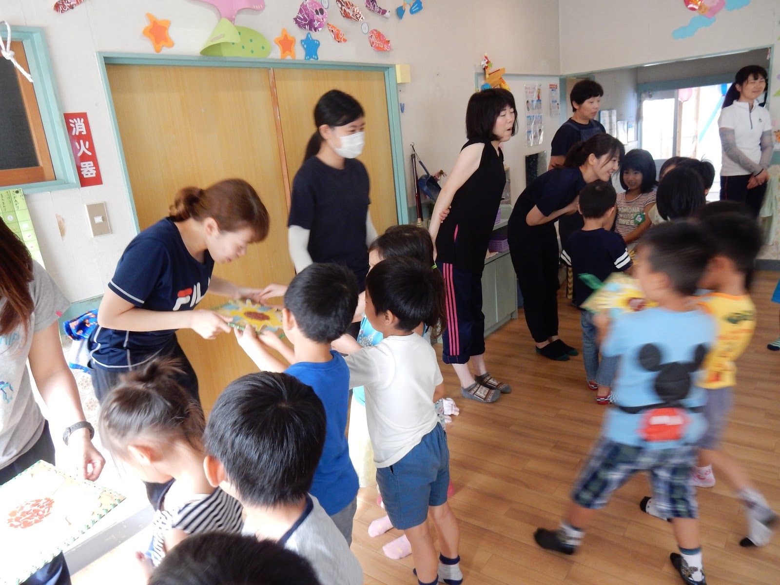 金曜日、土曜日と行われた、ひまわり組さんのお泊り保育。手足口病の流行で、全員揃ってというわけには行きませんでしたが、参加したお友達は、とっても濃い2日間を過ごすことができたのではないでしょうか。もうすぐ取り壊されてしまう仮設園舎で、大きな思い出づくりができました!!さて、どんな様子だったのでしょうか。
