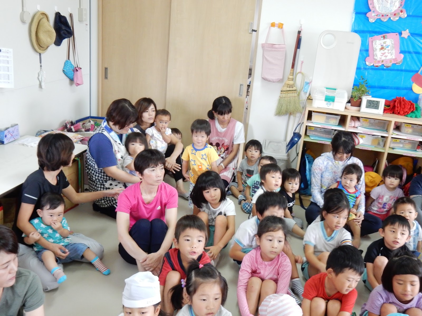 しっかりお話を聞きながら、早く起きて、お兄ちゃんお姉ちゃんとラジオ体操に行く話をしてくれたり、もうすでに、お手伝いをしている話を聞かせてくれる子もいました。