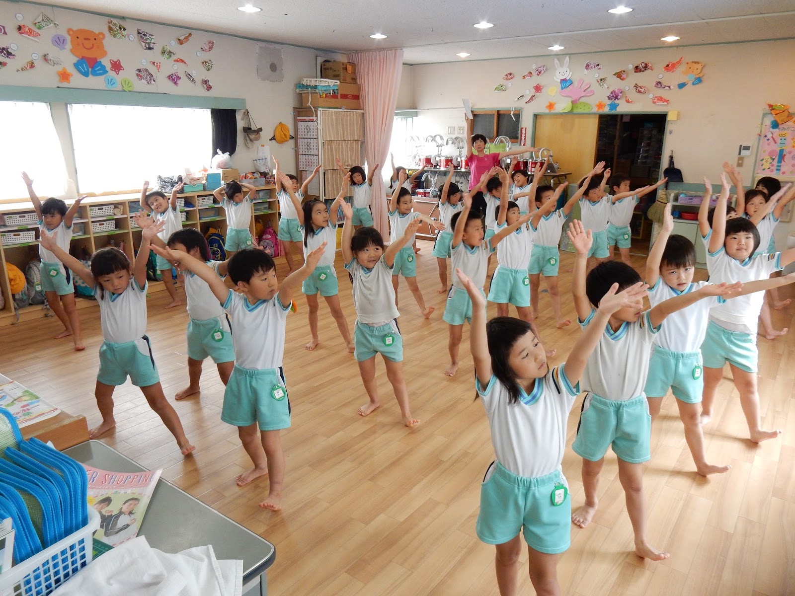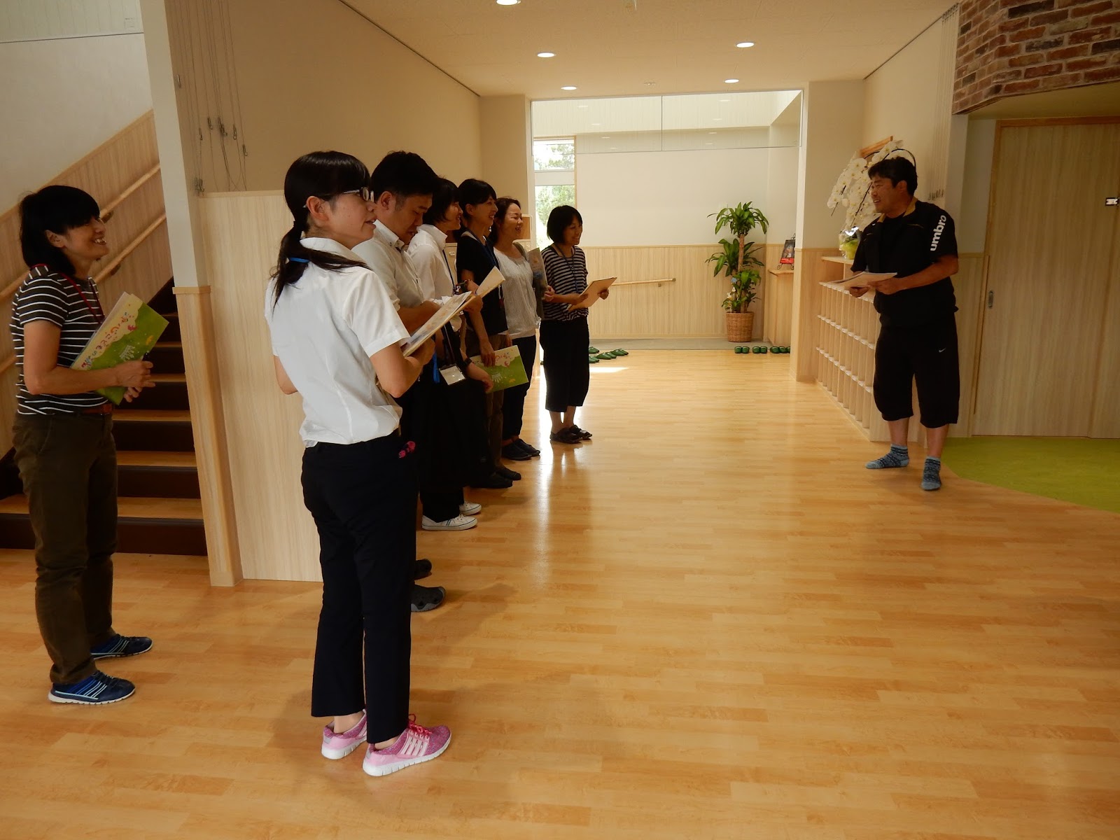 午後からは、那留小学校の先生方による研修会が行われ、ひまわりさんの組立体操も少し見ていただくことができました。就学に向けて、進学した子ども達の様子を見いてみたりと、普段から連絡を取り合う事で、子ども達が安心して学校への気持ちを高められるように取り組んでいます。