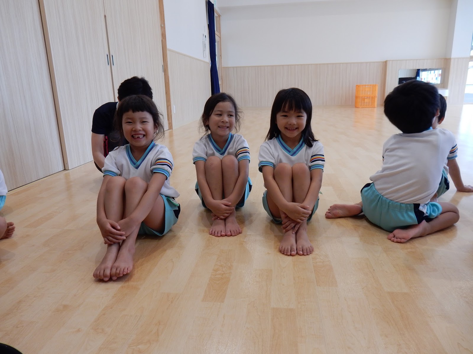 子ども達もいつも以上に集中!!待っている間も、ピシっと体操座りで待っている女の子を発見!!かっこいいね!!と声を掛けるとこの笑顔♡