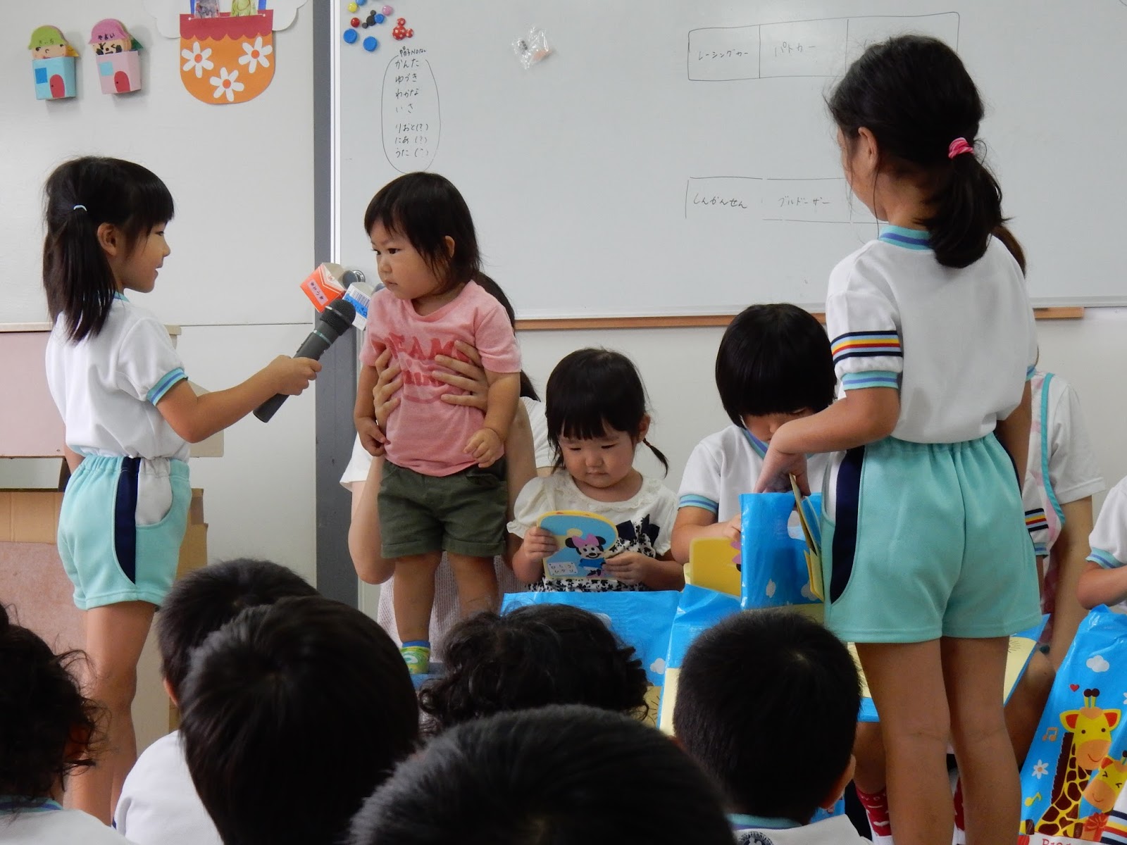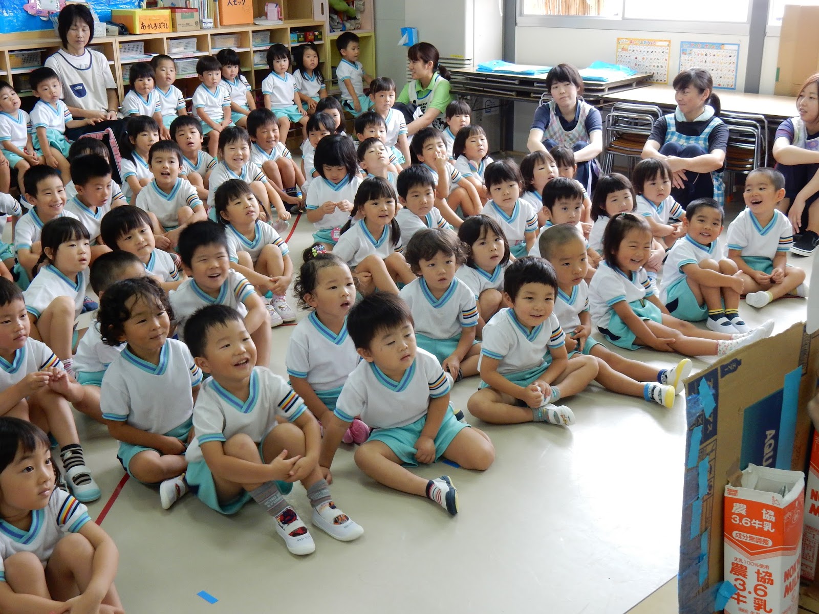 今日は、みなみ先生と、あやか先生がお話を見せてくれました。子どもって、“おばけ”大好きですよね♪今日のお話も、かわいらしいオバケが出てくるお話で、みんな楽しくみることができましたよ!