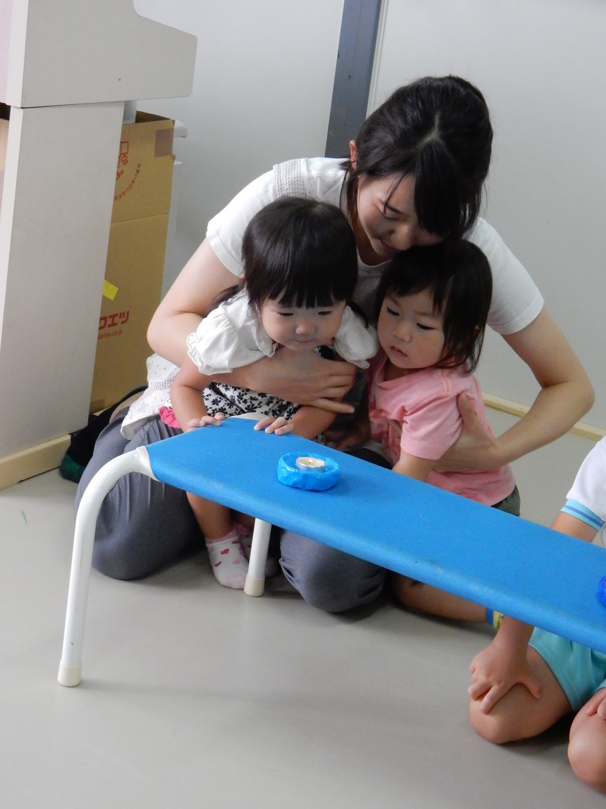 せーの!!!と勢いをつけて、『ふー!!!』とローソクを吹き消しました。ひよこ組さんも、先生と一緒に、『ふーー!!』