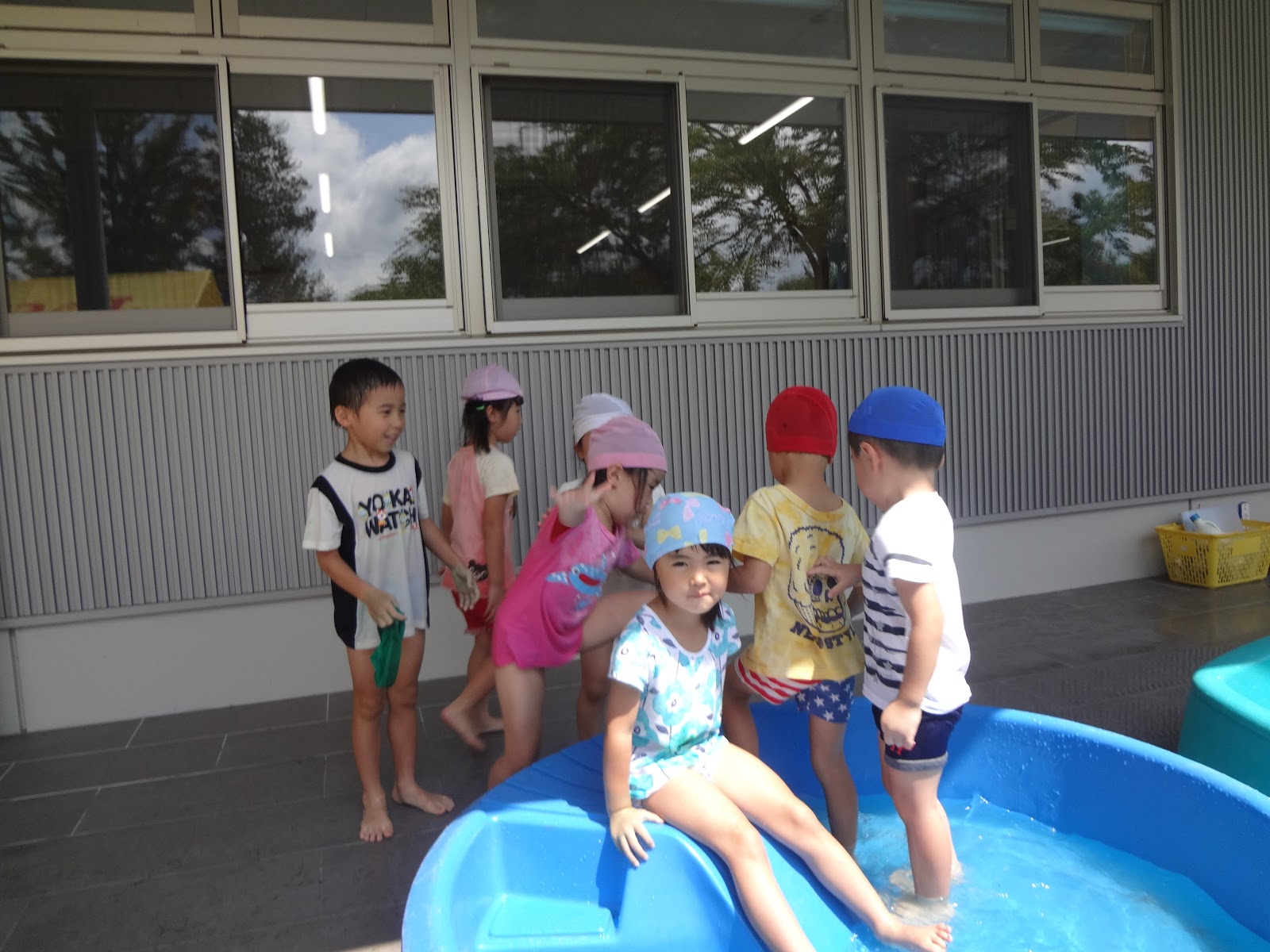 新園舎に引っ越してからも、少し水遊びを楽しみましたよ!