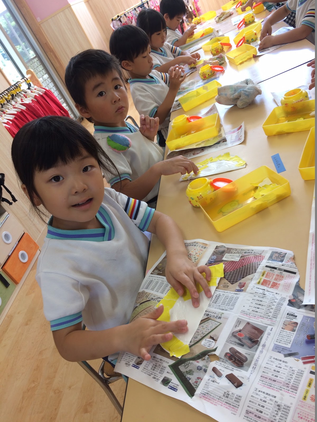 9月18日は敬老の日ですね。今、園では心を込めて、おじいさん、おばあさんへのプレゼントを作っています。クラスごとに、かわいらしい物が出来あがりそうですよ!