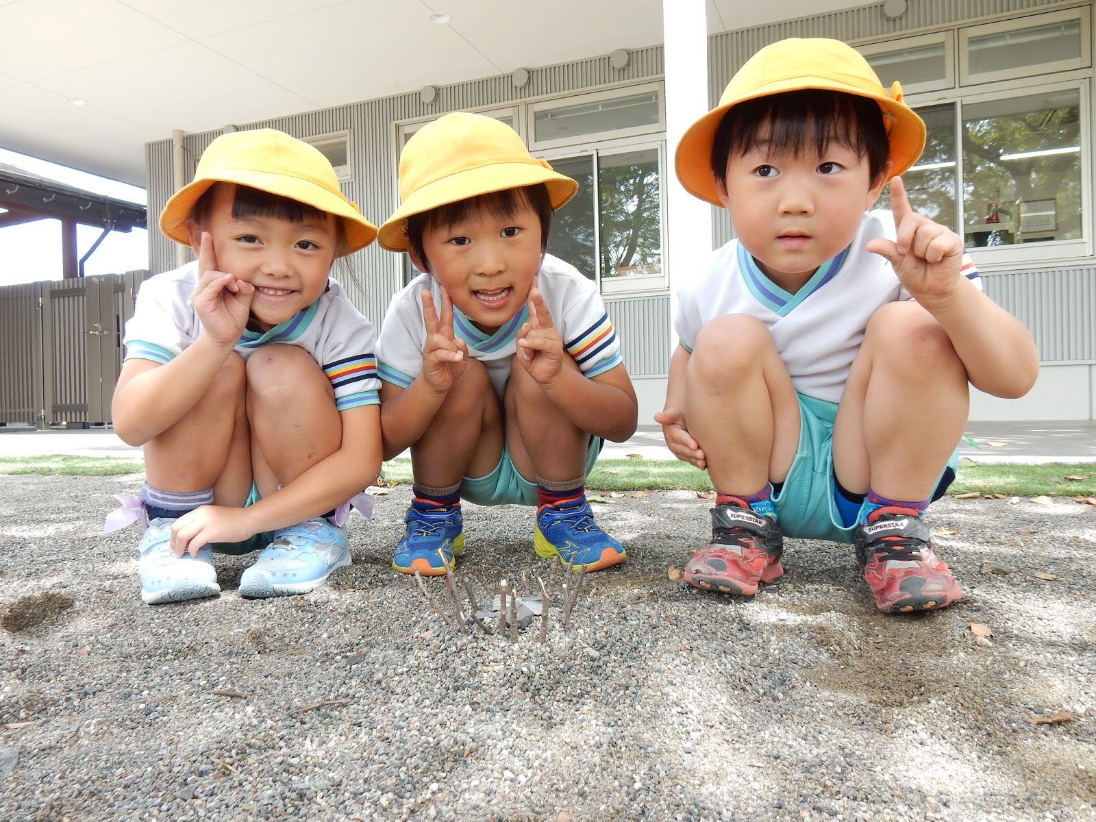 昨日の総練習で、半日頑張った子ども達。今日は、どのクラスも練習をお休みして、気分転換です。台風前の貴重な晴れ間。お散歩に出かけたり、園庭でゆったり過ごしました。