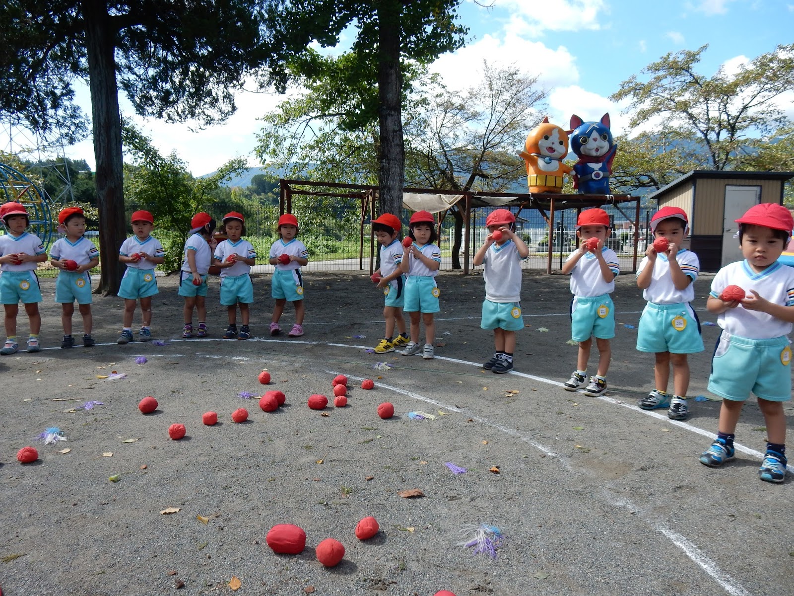 たんぽぽさんは、入場する時に1つずつ玉を持ってスタートする事にしました!これで必ず1つは投げる事が出来ます!玉を配ってもらうと、とっても嬉しそうに手に持って入場してくれました!子ども達が、楽しく参加できるように、運動会までいろいろ工夫しながら進めていきます!