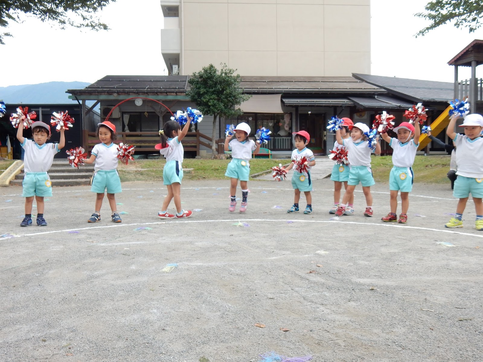 今日も、午前中は運動会の練習をしました。どんどんお遊戯も、競技も上手になっています!そして、応援席に座っているお友達も、一緒に歌ったり、ダンスを踊ったりと、楽しめるようになってきて、盛り上がっていますよ!普段は年齢ごとにお部屋に分かれて生活をしているので、兄弟を見つけると、なんだか嬉しそう!