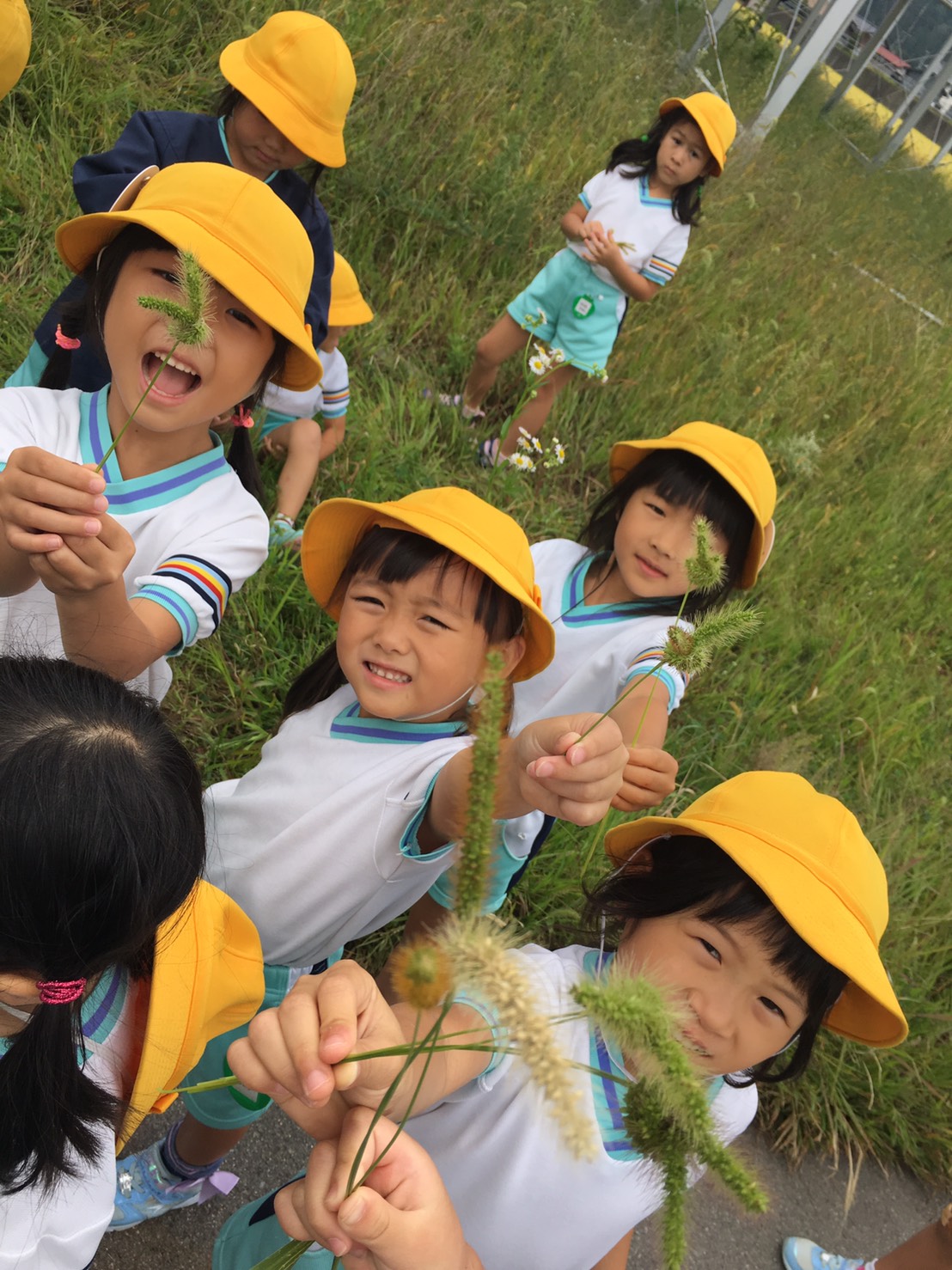 ゆりさんは、昨日の宝石集めが広まっていました!園庭のあちらこちらで、こんな感じで下を向いて帽子を片手に探していました。