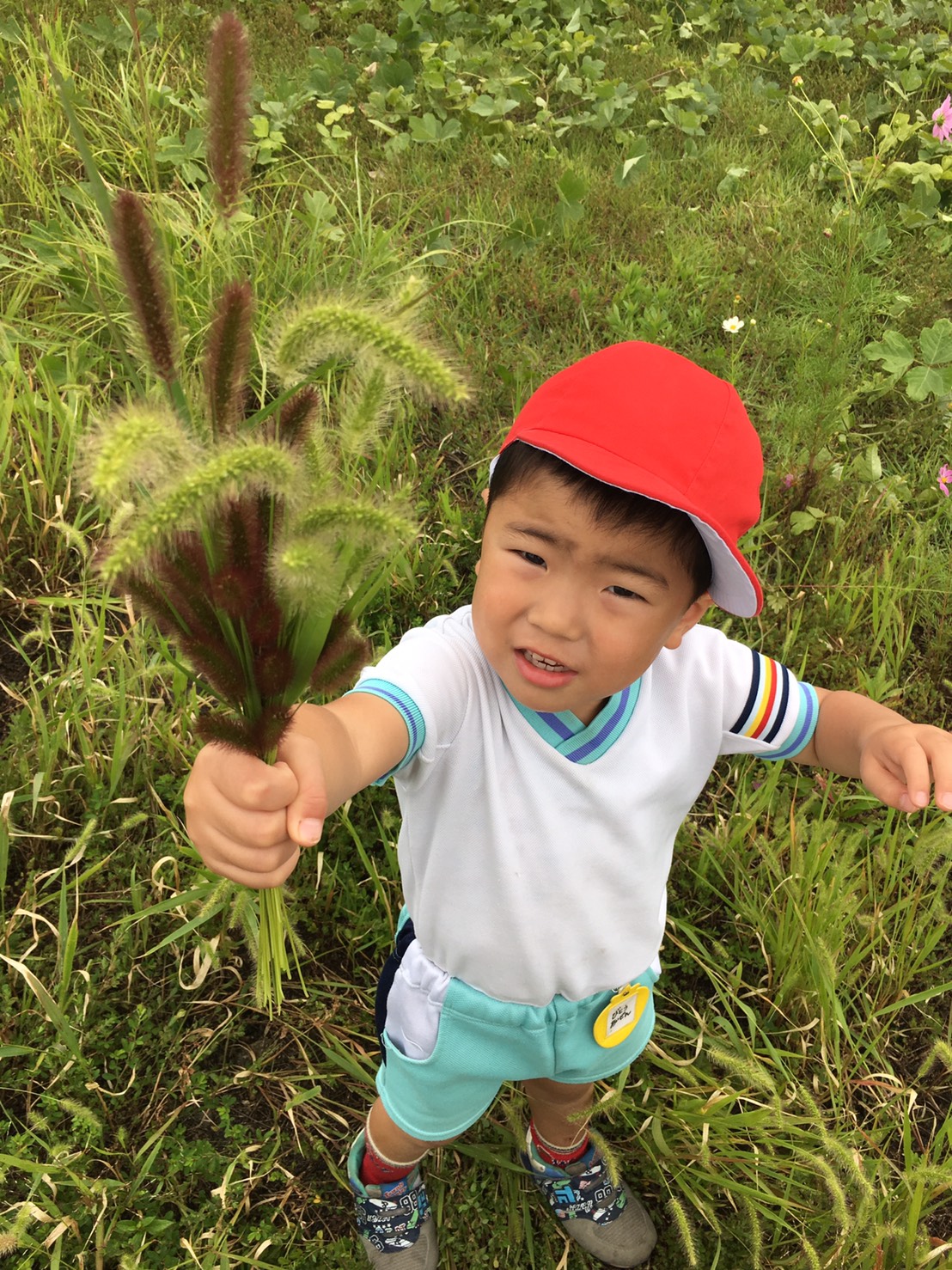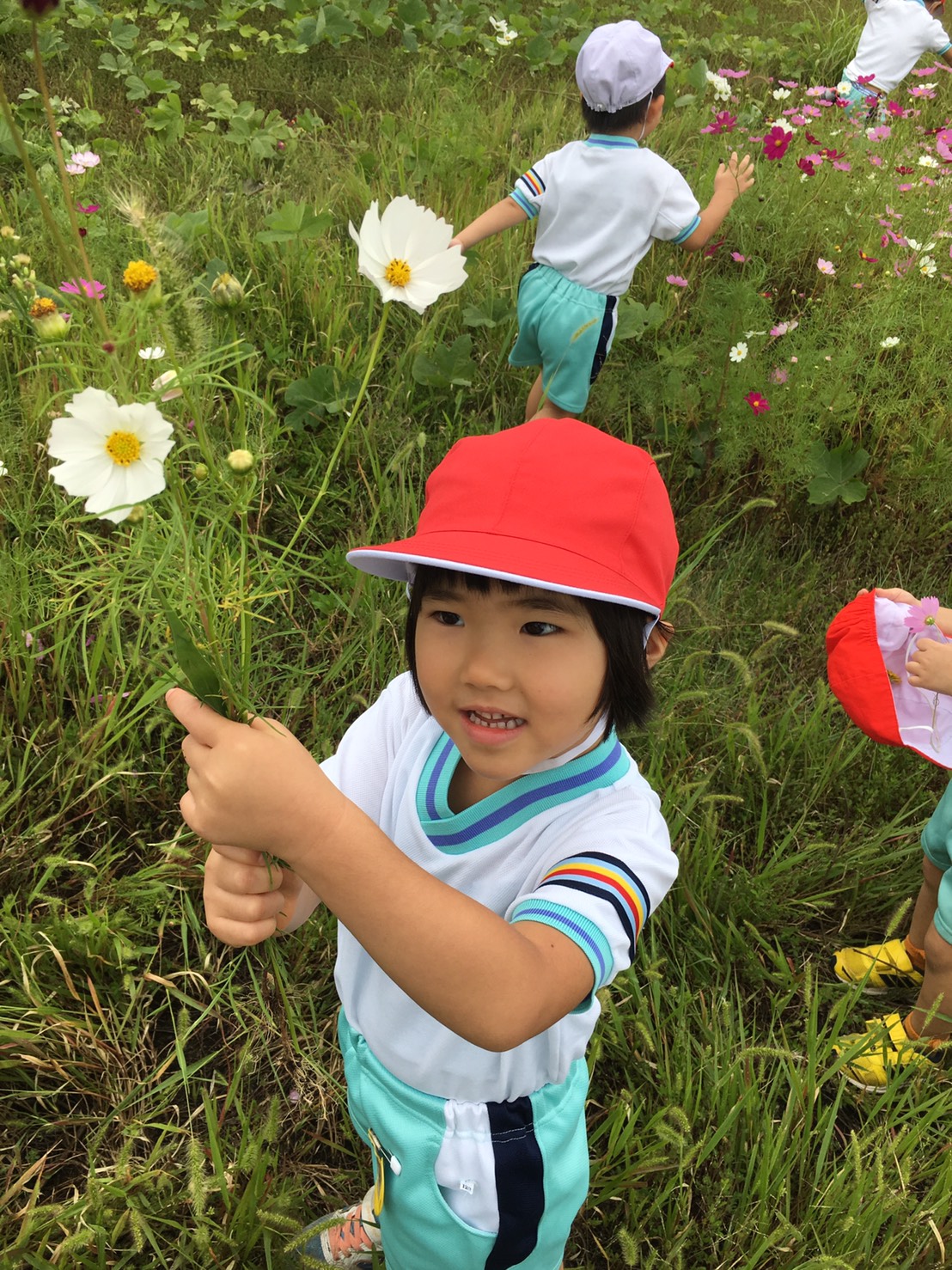 コスモス畑発見!みんなの背丈ほどのコスモスが一杯です!なーんにもない原っぱで、草の中にかくれんぼ♪ごろりと寝転がったり、楽しそうですね!