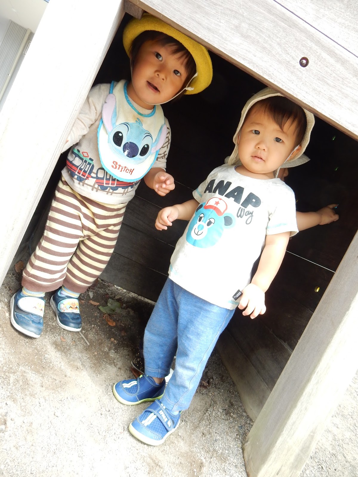 今日の園庭での様子です。ひよこさんのお友達も、遊具で遊びます。かくれんぼをしたり、すべり台を登ったり。全身を使って遊びます!