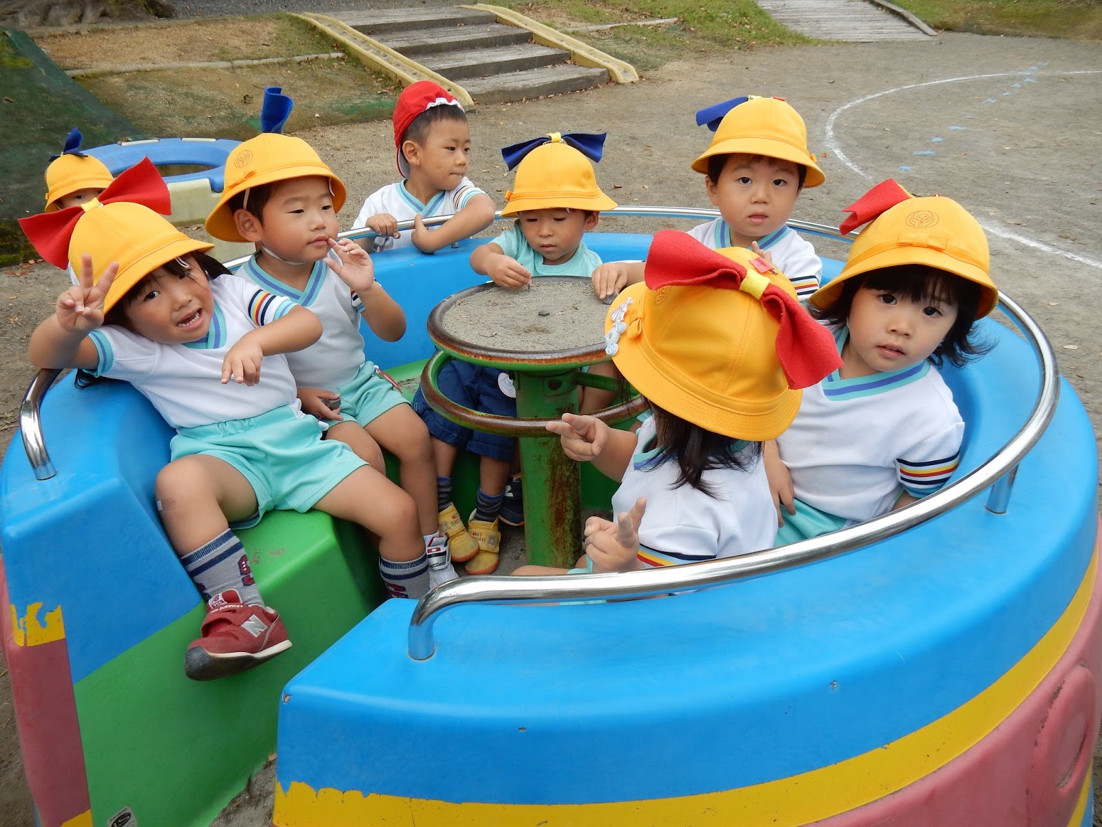 お友達と一緒って、楽しいですよね!すみれさんも、みんなで仲良くUFOに乗っています!『せんせ~!!まわして~!!』というリクエスト…重たいんですよね(笑)