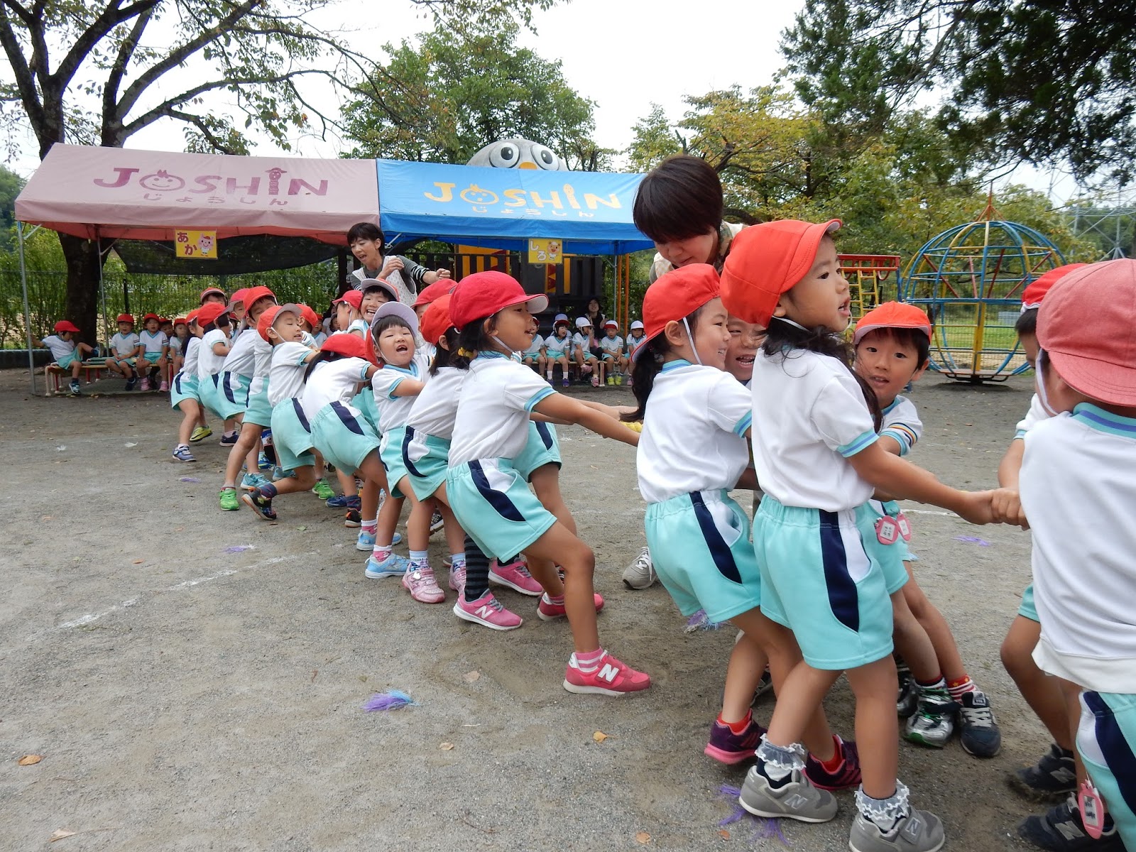 よーいしょ!!よーいしょ!!運動会練習を見ているたんぽぽさん、綱引き上手です!草のツルをみんなで引っ張ります!引っ張りすぎて、尻もちつかなかったかな??